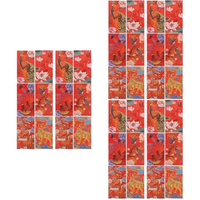 Lot de 36 enveloppes rouges traditionnelles chinois Nouvel An avec aspect festif Enveloppes rouges Ces sacs pourraient ajouter une forte atmosphère festive Festival Fête Du Printemps TEHAUX Lot De 36 Enveloppes Traditionnelles En Papier Pour Le Nouvel An Enveloppes Traditionnelles Pour Argent Contenu du forfait 36 enveloppes rouges Caractéristiques -Bon matériau : Adoptant du papier, ces enveloppes rouges sont robustes et difficiles à casser, avec une surface lisse. avec ce , paquet rouge du nouvel an chinois, enveloppes de style chinois Style délicat : enveloppes rouges avec des motifs délicats, uniques et charmants pour le nouvel an, enveloppes rouges chinoises, enveloppes chinoises Enveloppes rouges - Hong Bao - 6 enveloppes - Année du Dragon... Ilustración de Stock Nouvel An Chinois 2025 - Année du Serpent Enveloppes d'argent Ce sont des poches rouges qui vous permettent de mettre de l'argent à l'intérieur. Applications larges : vous pouvez stocker les cartes de vœux, l'argent, les invitations, etc. sur des enveloppes rouges en papier -Thème chinois : avec des caractères chinois et des motifs délicats, pour créer une atmosphère festive, enveloppes chinoises Informations sur les marchandises Enveloppes rouges chinoises Le motif de dessin animé peut sûrement donner à la famille une surprise.