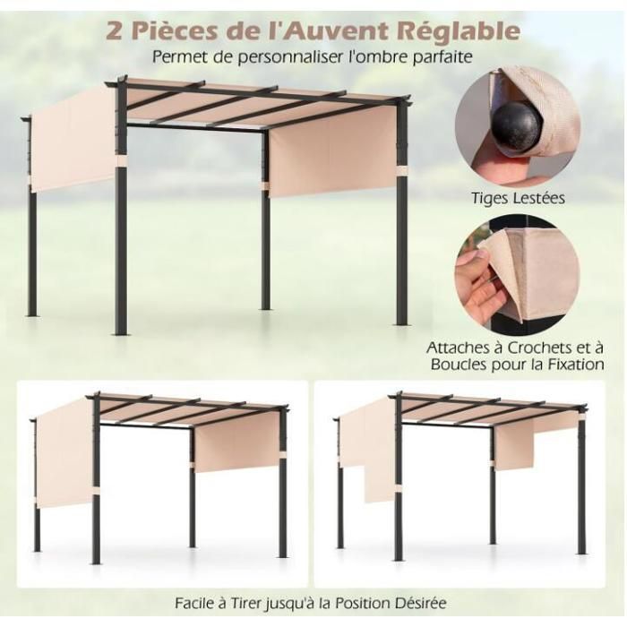 Résistant à la décoloration et au vieillissement, il diffuse une lumière douce et agréable. Outsunny Pergola adossée Aluminium 4,5 x 3 m avec Toit en Polycarbonate résistant UV, gouttière intégrée, tonnelle de Jardin pour terrasse Patio véranda, Gris Description du produit Description du produit : Soutenue par des colonnes métalliques 6x6 cm et renforcée de tubes d'aluminium, la pergola murale résiste aux intempéries avec une stabilité exceptionnelle. Cette pergola jardin extérieur transforme votre terrasse près de la piscine, en espace repas ou lieu de convivialité – créez l'espace de vie extérieur de vos rêves. Une pergola adossée conçue pour une tenue au vent optimale et une sécurité maximale. Le kit inclus offre des options d'ancrage polyvalentes, avec 20 piquets de terre et 20 vis d'expansion, assurant une installation sécurisée sur différents types de surfaces. Brise Les leurs mucus pergola aluminium 5x3m pas cher merveille Très en colère C TOIT INNOVANT POLYCARBONATE : Notre pergola murale bénéficie d'un toit en polycarbonate premium. Conçu pour résister aux conditions météorologiques variées, cette pergola murale supporte jusqu'à 10 cm de neige grâce à son toit en polycarbonate de qualité qui empêche l'accumulation d'eau et résiste à la décoloration. SOLIDE POUR TOUTES SAISONS : Équipez votre espace extérieur avec cette pergola adossée 4x3 qui filtre les UV nocifs tout en vous protégeant efficacement des pluies légères à modérées et des chutes de neige (jusqu'à 10 cm). La structure en métal thermolaqué avec 6 poutres et des poteaux épais garantit stabilité et durabilité face aux intempéries. La toile en polyester résiste à la... Kit Ancrage Piquets Vis RELAX4LIFE Pergola Adossée 4x3 | Pergola Murale 4x3 Jardin Extérieur Pergola Kit Ancrage Sol Dur Meuble Avec des dimensions généreuses, la pergola adossée crée une zone de détente spacieuse, parfaite pour accueillir des événements ou se détendre près de la piscine ou dans n'importe quel espace extérieur.