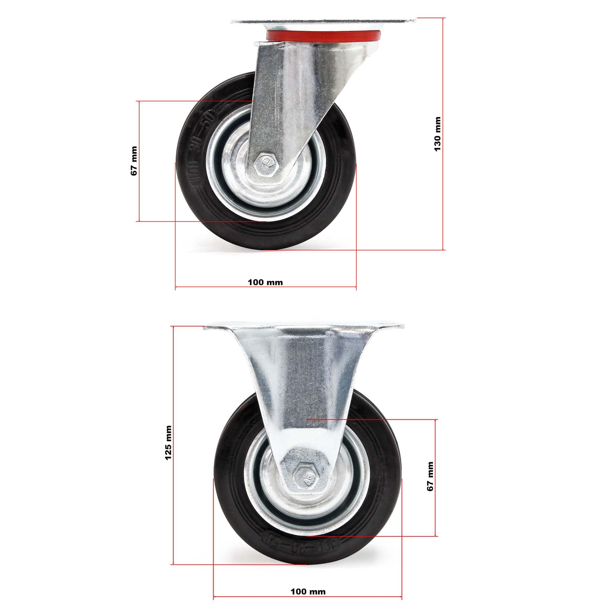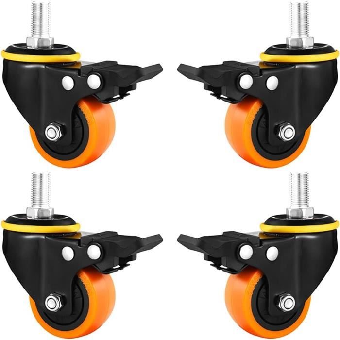 4 X Roulettes Pivotantes Et Frein Caoutchouc Noir Diamètre 100 Mm