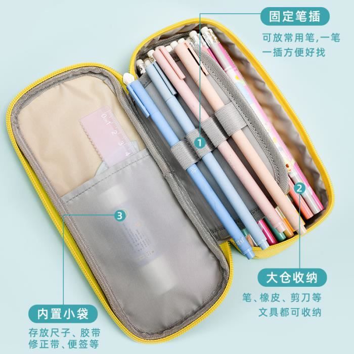Trousse Scolaire Extensible,Trousse à Crayons de Grande Capacité Sac à Trousse à crayons grande capacité 72 trous 4 couches, sac à stylos, support de rangement pour peinture, fermeture éclair lisse, fournitures scolaires, papeterie cadeaux – acheter les meilleurs produits dans la boutique Service : Si vous avez des questions, n'hésitez pas à nous contacter à tout moment. Dimensions : Dimensions : 23 cm x 10 cm x 13 cm. Design pratique : Cette trousse esthétique comporte deux compartiments pour ranger facilement stylos, crayons, marqueurs et autres fournitures scolaires. Pot à crayons organisateur de papeterie : Ce pot à crayons est un incontournable pour garder votre papeterie organisée. Il offre une grande capacité vous permettant de ranger stylos, crayons, marqueurs, gommes et autres petits objets Multifonctionnel : ce n'est pas seulement une trousse, mais peut également servir à d'autres fins. Grande capacité : conçue avec une disposition spacieuse de 21 x 5 x 15 cm, cette trousse à crayons de grande capacité peut facilement contenir des stylos, des crayons, des notes autocollantes, des gommes, des taille-crayons, et plus encore Polyvalent : il peut être utilisé comme trousse à stylos, crayons ou pinceaux, trousse de maquillage, bureau personnel et fournitures scolaires. Elle répond à vos besoins en matière de trousse esthétique.