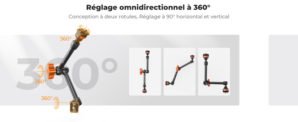 Large compatibilité: saisissez fermement la plupart des types d'accessoires ou d'outils de tournage, y compris des supports de lumière de studio, des écrans, des flashs à LED, des tiges, des poignées, des trépieds, des guidons de moto ou de vélo, des poteaux de bateau, des pinces de parapluie, etc. Support de caméra pivotant à bras long Caméra de vidéosurveillance en métal, support de p... – Grandado Conception antidérapante: les deux pinces comportent des tampons en caoutchouc non glissants, la prévention de la glissement, le maintien de l'équilibre et la protection contre les rayures, garantissant que votre équipement reste sécurisé et protégé. Le bouton de vis garantit que les deux pinces sont solidement fixes et librement réglables pour répondre à vos besoins spécifiques. Construction en métal robuste : la construction hybride en alliage d'aluminium et en acier inoxydable possédée par moulage sous pression rend cette pince et bras réglables robustes, résistants aux rayures, et maintient cet équipement de photographie léger à 320 g, et supporte jusqu'à 3,5 kg avec facilité Plage de serrage polyvalente: capable d'objets en sécurité avec diamètres allant de 18 à 39,6 mm (0,7 à 1,6 pouces), le serrage de poteau de serrage de caméra permet un montage stable et un réglage flexible sur toute tige tubulaire ou surfaces plates, idéale pour la photographie en plein air et l'enregistrement vidéo. Spécification: Type d'article: support de montage à double pince Matériel: ABS Taille serrée: Env. Bras Flexible Pour Caméra Tête De Balle - Trépied Pour Smartphone, Tête De Balle Ajustable, Support Pour Microphone Pince Pour Accessoire Vidéo Photo