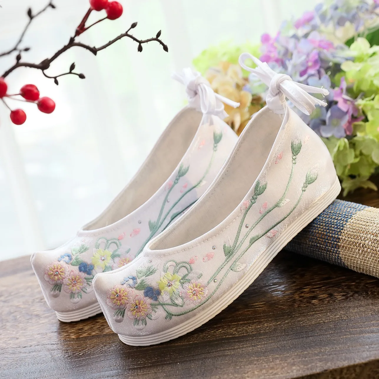 Chaussures brodées de style chinois traditionnel, motif floral délicat, chaussures plates élégantes avec dessus en toile. Chinois Rétro Hanfu Chaussures Été Maille Ballet Mocassin Floral Chaussures Hanfu exquises avec broderie florale de style ancien pour femme, confortables, légères, hauteur intérieure, chaussures de marche style chinois, rétro, élégantes, avec pompons et perles Design tendance, 100 % neuf La semelle Oxford douce est antidérapante et sécurisée, avec une bonne adhérence du bas. EU33 = US3,5 = UK2,5 = 20,334 cm = US 4,5 = UK 3,5 = 21 cm EU35 = US 5 = 21,6 cm EU36 = US 5,5 = UK 4,5 = 22,3 cm EU37 = US 6 = UK5 = 23 cm Conçues pour compléter les vêtements Hanfu, ces chaussures se déclinent dans une variété de styles, des ballerines délicatement brodées pour les femmes aux bottes montantes polyvalentes pour les hommes Respirant, léger et antidérapant. EU24 = US 8 = UK 7 = 14,3 cm EU25 = US 8,5 = UK 7,5 = 15 cm EU26 = US 9 = UK 8,5 = 15,8 cm EU27 = US 9,5 = 16,5 cm EU28 = US 11 = UK 10,5 = 17 cm., 9 = US 14 1,5 = UK 11 = 17,8 cm. Chaussures Plates élastique FRCOLOR Chaussures Brodées Hanfu Pour Femme Style Ancien Avec Taille EU24 à EU37