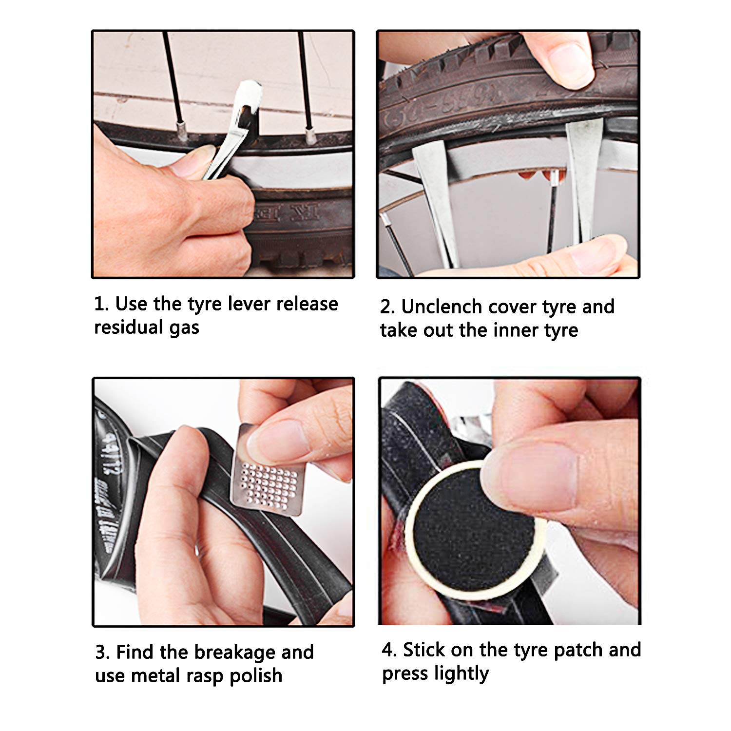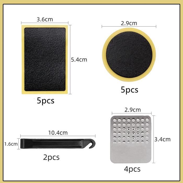 Ce kit de réparation pour chambre à air de vélo réuni l'essentiel pour procéder à une réparation sur une chambre à air. Facile et pratique, il ne prend pas beaucoup de place et se glisse facilement dans une poche. L'essentiel est là Patchs adhésifs pour pneus de vélo/vélo : ils permettent de fixer rapidement les pneus à plat et de réparer la plupart des chambres à air de vélo et autres articles gonflables., Très pratique. Bombe Anti Crevaison Velo QKURT Kit D'outils De Réparation De Vélo, Outils De Réparation De Vélo Avec 3 Leviers De Pneu De Kit Réparation Pneu Vélo Il vous suffit de les décoller et de les coller avec la perforation. Poids du colis : environ 130,4 g. Comprend 2 cuillères à pneu de vélo, 12 rustines de pneu, 1 râpe à pneu métallique cisif et une boîte d'emballage délicate. Rustine reparation chambre a air 100mm JET QKURT Kit de réparation de crevaison pour vélo, leviers de vélo Kits de réparation de pneus de vélo : spécialement conçus pour réparer vos pneus de vélo quand il y a des problèmes. Levier de pneu de vélo/vélo : fabriqué en acier forgé de haute qualité, fin et assez solide pour enlever certains des pneus les plus durs, changer les pneus et les chambres à air facilement et en toute sécurité. Ensuite, attendez 30 secondes avant d'insérer le tube dans le pneu et de le regonfler., Remarques : 1., Garantie de remboursement de 30 jours et exempt de défauts de matériau et de fabrication., 2., Si vous recevez l'article avec un problème, veuillez nous contacter immédiatement, vous obtiendrez le meilleur service après-vente., 3., Nous ferons de notre mieux pour vous aider jusqu'à ce que cela soit complètement résolu.