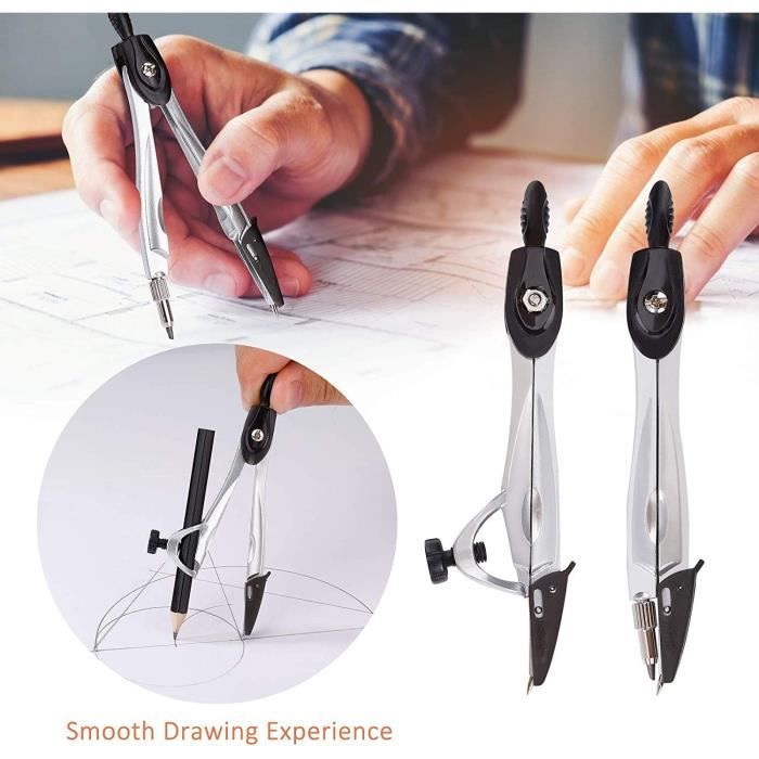 Jeu de règles: en plastique transparent, la couleur claire vous permet de voir les mots, les lettres et les chiffres sur la page à travers le rapporteur, vous aidant à mesurer plus précisément. Compas De Dessin Géométrie Étudiante Set Math Compass Divider, Set De Ensemble de Géométrie,10pcs Kit Géométrie,Règle Protractor Compass Pencil Recharges Plomb Crayon. En 1 fois. 16,49 €. Prix de comparaison Boussole mathématique: La boussole de l'école dessine jusqu'à un cercle de 10 de diamètre. Ensemble de géométrie de 10 pièces: Notre kit mathématique comprend 2 triangles, 1 règle, 1 rapporteur, 2 boussoles, 1 crayon, 1 recharge de crayon, 1 taille-crayon et 1 gomme, adaptés à différentes personnes. Le forfait comprend: Un ensemble de kit mathématique comprend 2 triangles, 1 règle, 1 rapporteur, 2 boussoles, 1 crayon, 1 recharge de crayon, 1 taille-crayon et 1 gomme, répond à vos différents besoins. Boîte de rangement: le tout dans un boîtier en plastique transparent et situé au bon endroit, vous aide à vous organiser facilement et ne vous perdez pas, vous pouvez le mettre où... 2 types différents de boussoles à dessin peuvent répondre à vos différents besoins. 10pcs géométrie boussole ensemble école mathématique rapporteur kit règles jeu de dessin 1., Geometry Compass Convient à la plupart des niveaux d'étudiants, enseignants, ingénieurs, designers, artistes, etc., 2., Répondez à tous les besoins en matière de dessin de cercle et de mesure d'angles., 3., Ensemble complet comme cadeau pour les enfants et les étudiants pour commencer l'apprentissage des mathématiques et le dessin., 4., Boîte de rangement facile à transporter et incassable. Compas Règles Rapporteur Vordas 10 Pièce Ensemble De Géométrie - Règle Protractor Compass Pencil Recharges Plomb Crayon Matériel Dessin Technique Mathématiques