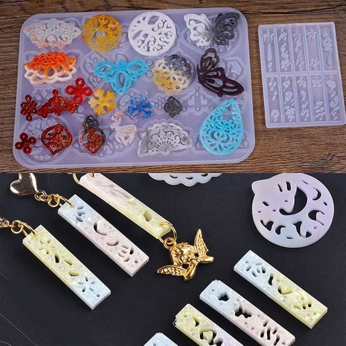 Il ne se déchire pas et ne se déforme pas facilement, préservant ainsi la netteté des détails. Chaque moule est pré-percé au centre, vous évitant ainsi de percer ultérieurement et vous permettant de créer directement pendentifs, porte-clés et autres ornements. Inspirez votre créativité, des applications variées:Que ce soit pour créer de délicates boucles d'oreilles, des pendentifs ou des porte-clés et breloques uniques, ce kit moule silicone fleur saura donner libre cours à votre imagination. Résistant à la déformation et réutilisable, le silicone garantit un démoulage facile à chaque utilisation. Incorporez paillettes, pigments, fleurs séchées et autres matériaux dans les moules pour créer vos propres œuvres d'art uniques. Kit de Moules en Résine, 7 Pcs Moule Silicone Résine Epoxy Bijoux, 20... Moule en silicone - Non spécifié - Aile de Plume - Transparent - Durable - Flexible - Beaux-Arts et Loisirs créatifs Sa flexibilité permet un démoulage facile et complet de la résine durcie. C'est aussi un cadeau idéal pour stimuler la créativité, qui conviendra à tous les amateurs de loisirs créatifs. Il est idéal pour réaliser des cadeaux personnalisés et faits main pour des occasions comme les anniversaires, la Saint-Valentin, la fête des Mères ou Noël, et exprimer vos sentiments avec élégance. Souplesse et durabilité, détails exquis:Fabriqué en silicone de haute qualité, le moule silicone resine epoxy offre une flexibilité et une durabilité exceptionnelles. Moule Silicone Animaux Voyyphixa 8 Pieces Moule En Silicone Résine Epoxy En Forme De Fleurs Shaker Moule Bijoux Moulle De Coulée Quicksand Resin Molds DIY Porte-Clés Pendentif Moulage (Flower Moule A Bonbon Moules silicone , bois et acrylique flexibles pour pâte polymère et résine. Détails fins et démoulage facile pour vos créations DIY personnalisées Un cadeau à partager : Plus qu'un simple ensemble de moules, ce cadeau est un présent empreint de créativité et d'affection. Que vous soyez un(e) artiste confirmé(e) ou un(e) novice en art de la résine, ce kit de moules sera une source d'inspiration. Motifs floraux exquis, créativité sans limites:Ce kit de moules en silicone pour pendentifs floraux comprend trois moules aux motifs floraux différents, offrant une grande variété d'options pour la création de colliers, boucles d'oreilles et pendentifs. Embellissez votre vie avec des fleurs artistiques : créez vos propres bijoux en résine ! Libérez votre créativité : Au-delà des colliers et des boucles d'oreilles, ces délicates « fleurs » se transforment en breloques pour sacs, marque-pages, décorations pour l'intérieur de votre voiture et bien plus encore, apportant une touche artisanale et chaleureuse au quotidien. Ajoutez librement des embellissements tels que des paillettes, des fleurs séchées ou des sequins aux moules pour créer des bijoux uniques.