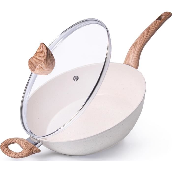 Le revêtement en céramique ne se décolle pas, même avec des ustensiles métalliques, tandis que les joints en silicone de qualité alimentaire empêchent les fuites de vapeur. La conception légère de la poêle à frire antiadhésive permet de jeter, retourner et nettoyer sans effort, parfaite pour les plats délicats comme les omelettes ou les crêpes. Légère (2450g pour le modèle 30cm) et facile à nettoyer, à la main ou au lave-vaisselle. Polyvalente, elle convient pour la maison, le camping, les restaurants POÊLE PROFONDE AVEC COUVERCLE 28 CM - ECO PRESTO La surface lisse se nettoie avec un simple chiffon, pas besoin de frotter ou de tremper. Poêle à frire antiadhésive, poêle à frire de 30,5 cm avec couvercle et revêtement anti-adhésif Design pensé axé sur le chef : dispose d'une poignée résistante à la chaleur de 20 cm pour une prise en main sûre. Le couvercle en verre avec évent de vapeur permet une surveillance sans perte de chaleur ou de nutriments. Poele En Titane Tipanexi Casserole En Fonte D'Aluminium Antiadhésif Modèle Forte Avec Couvercle Poêle Antiadhésive Titane Durabilité de haute qualité : une base en alliage de titane prise en sandwich avec du fer fin assure une répartition homogène de la chaleur et une résistance à la déformation. Caractéristiques : Style : casserole et couvercle, couvercle et cuiseur vapeur. Dimensions du produit : Corps : 30 x 10 cm., Poignée : 20 cm., Poids : 2 kg.