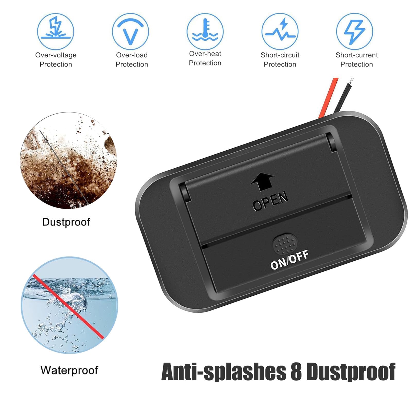 【Installation Facile】 Couvercle rabattable étanche aux projections. Voiture Cars ,Prise De Courant Pour Chargeur Usb De Voiture Prise Prise USB pour Camping-car, Prise USB Murale 12 V, 48 W QC3.0 USB A et 2 ports USB C avec Interrupteur Marche/Arrêt pour Voiture Bateau. 19,49€. 24,49 Modèles compatibles : Connexion PD : Modèles compatibles : iPad Pro 12,9 / iPad Pro 11 / iPad Pro 10,5 / iPad 10,2 / iPad Air 10,5 / iPad mini 7., 9, iPhone 13/13 Pro/13 Pro Max/ 12/12 Mini /12 Pro/ 12., Pro Max/11/11 Pro/11 Pro Max, Galaxy S22/21/20 Google Pixel 6/6pro/5 etc. La gestion intelligente optimise la vitesse de charge pour chaque port. Appareils prenant en charge la charge rapide PD Connexion QC3., 0 Tablettes : Tab A / 4 / S6 / S5 / S5e / S4 / Google Pixel Slate 12,3, Fire HD 10/ Fire HD 8/ Fire 7 / Kindle Téléphones mobiles : XIAOMI Redmi Note 7 / XIAOMI MI 9 / MI 8 / MI 8 SE / MIX 3 / MIS 2S / MIX2 ; Galaxy S22/21/20 / S10e / S9+ / S9 / S8 / S8+ / S7 / Note 9 / Note 8 ; Huawei Honor 8X, Huawei P30 Lite/P30 pro/Mate 20 Lite/Mate 20X/Mate 20 Pro/Mate 10/P10/Mate 9 ; LG G7/G6/G5/V30/V20/V10/A20/A10/A50 ; Google Pixel 6/6pro/5, Nexus 5X/6P ; Sony XZ3 Premium / XZ2 / XZP / Airpods Pro / Nintendo Switch et plus encore. Percer un petit trou pour le câble, introduire le câble, connecter le fil rouge au pôle positif et le fil noir au pôle négatif. Universel pour roadtrips, camping ou trajets professionnels. Pourquoi nous choisir? 54W Charge véritable à pleine vitesse | Deux ports avec alimentation électrique indépendante (1 × QC3., 0 18W + 1 × PD3., 0 36W), charge à pleine puissance simultanée pour deux appareils. Prise Usb 12v Avec Charge Rapide Prise Caravane Prise USB VOSSOT 12V-24V Pour Camping-car - Type C PD 20W Et QC 3.0 - Avec Interrupteur Et Cache Prise 12v Pour Camping Car Chargeur Voiture UN AVIS: Chargeur rapide à port PD pour iPhone Series : doit être utilisé avec un câble USB C VERS LIGHTNING. Intckwan 12v Led éclairage intérieur, Lapes de toit à... Doit être utilisé avec un câble USB C TO C. 【Lot Premium 2 Pièces】 Solution idéale pour propriétaires multi-véhicules (voiture + camping-car) ou besoin de backup. Interrupteur de puissance indépendant | Protection de la batterie de véhicule. (Non inclus dans la livraison) Chargeur rapide à port PD pour Samsung Note 20/Galaxy S20+/S20/S10+/S10e. Pas de perçage complexe - un petit trou de câble suffit. 【Sécurité Intelligente】 Fabriquée en ABS anti-choc avec fixation par vis robustes (4 vis fournies). (Non inclus dans la livraison) Pour les téléphones mobiles prenant en charge Quick Charge 3., 0, vous devez utiliser le câble de chargement d'origine ou le câble de chargement rapide pour obtenir une charge rapide. Design pliable étanche | Utilisation fluide à une main sans contrôle visuel la nuit.
