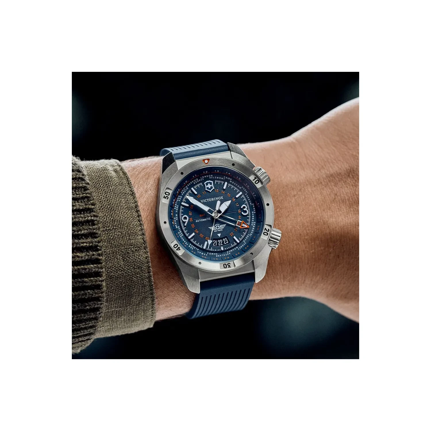 Victorinox Venture Relógio Dive Pro Automático Azul Aço Montre Automatique Homme Suisse Finition du cadran : coupe diamantée. Relógios Automáticos: Precisão, Elegância e Durabilidade Achetez Victorinox Air Pro Automatic Blue DYAL, Blue Rubber 242003. Livraison gratuite sur une sélection d’articles dès 25€ d'achats Offre une résistance ISO aux chocs et à l'eau jusqu'à 200 m, ainsi que des aiguilles et des marqueurs surdimensionnés remplis de Super-LumiNova Suisse. Couleur du bracelet : bleu, Hauteur : 13 mm, Poids : 132 g Fermoir : boucle déployante Finition du cadran : acier inoxydable. Idéal pour les voyages. Les doubles couronnes vous permettent de gérer 3 fuseaux horaires avec précision, et grâce aux index luminescents en relief, vous pouvez lire l'heure de jour comme de nuit. Alimenté par le mouvement automatique Swiss Made Sellita SW330-2 avec une réserve de marche de 56 heures, dispose de deux couronnes : une couronne vissée à 4 heures pour l'heure et une autre à 2 heures pour les fonctions GMT. Son cadran tridimensionnel permet de suivre jusqu'à trois fuseaux horaires, avec le deuxième fuseau horaire indiqué par une aiguille GMT spécifique. Finition du boîtier : brossé. Dimensions Hauteur : 13 mm Poids : 132 g Distance entre les poignées : 21 mm Diamètre : 43 mm Détails N° d'article : 242003 Pays d'origine : Suisse Couvercle du boîtier : Couvercle du boîtier vissé Chronographe : Non Fermeture : Broche déployante Rotation de la lunette : Lunette fixe Compte à rebours : Non Date : Oui Aiguilles luminescentes : Oui Deuxième fuseau horaire : Oui Résistant à l'eau : 2., 0 ATM/200 M/660 FT Matériau du boîtier : acier inoxydable. Précision dans différents fuseaux horaires Restez toujours prêt pour la journée Naviguez votre journée avec la confiance que vous apporte la précision suisse de l'horlogerie, un design innovant et des fonctions prêtes pour le vol.