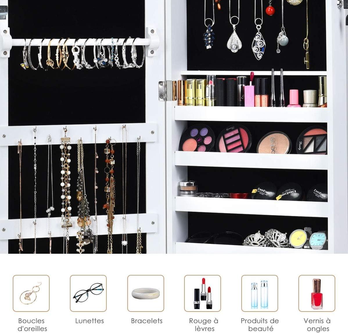 De plus, la structure est simple et compacte, que vous l'accrochiez à la porte ou au mur, elle sera un réel gain de place ! GOPLUS Armoire à Bijoux Mural avec Miroir et Lumière LED,Accrochée à la Porte avec Serrure, Miror Porte-Bijoux 120 x 36,5 x 11,5CM · Blanc · Marron · Noir Collecter par catégorie: La porte de l'armoire à bijoux comporte 6 rangées de cadres, pouvant contenir 60 paires de boucles d'oreilles; une tige de suspension en bois et 2 rangées de crochets. Sa structure est simple et compacte, que vous l'accrochiez à la porte ou au mur, elle sera un réel gain de place ! C'est votre meilleur choix pour votre chambre. Range Bijoux Armoire à Bijoux Mural Avec Miroir Et Lumière LED, Armoire De Rangement Mural, Accrochée à La Porte Avec Serrure (Rose,Tiroir Nomal) | Leroy Merlin Rangement Maison Structure robuste: Grâce à ces matériaux PDF de haute qualité, vous pouvez vous assurer qu’en plus d’être une superbe addition à votre chambre. Design moderne: Notre armoire à bijoux a une apparence élégante, ce qui améliore la modernité et la beauté de la pièce. L'élégant aspect noir et simple peut bien décorer n'importe quel style de décoration intérieure. Notre armoire vous permet d'essayer des vêtements et des bijoux sous une lumière douce, ce qui est une partie essentielle de votre vie délicate. Armoire LED Porte Bijoux Armoire à Bijoux Murale GOPLUS Avec Miroir Et LED - 120x36,5cm Blanc Déco Chambre élégante Économiser de l'espace: Vous pouvez suspendre cette armoire à bijoux au cadre d’une porte à l'aide des supports inclus ou tout simplement la fixer à un mur à l'aide des vis fournies. Armoire à bijoux murale led armoire bijoux de rangement avec miroir,6...