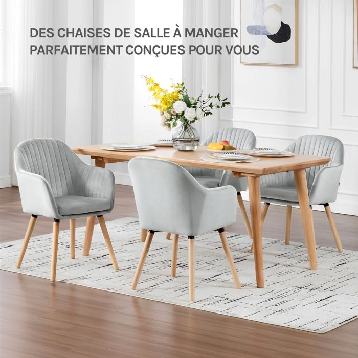 [Confort Ergonomique Sur-Mesure] Le dossier peut s'incliner jusqu'à 105°, équipé de montants rembourrés et d'une surface en tissu velours. [Solidité et Stabilité Optimales] Une structure renforcée par des montants métalliques croisés et des pieds réglables garantit une stabilité exceptionnelle, même lors d'une utilisation intensive. Marque. ELUCHANG · Couleur. Vert · Matériau. Velvet · Dimensions du produit. 43P x 53l x 75H centimètres · Taille. Lot de 2 · Poids de l'article. 12,5 Kilogrammes Qu'elles soient autour d’une table de repas, dans le salon ou en appoint, ces chaises s’adaptent à chaque espace, mariant style et fonctionnalité. Trouvez celles qui compléteront votre intérieur avec élégance [Design moderne et élégant] Le velours noir associé aux pieds métalliques dégage une esthétique contemporaine raffinée. Chaise de salle à manger Chicago velours et tissu gris [Polyvalence d'Espace] Adaptée à salle à manger, cuisine, dressing ou salon (60-80 cm table) 5 vis suffisent pour monter votre chaise en quelques minutes. Chaises Accoudoirs Gris Métal Chaises Avec Accoudoirs Ariana En Velours Et Pieds Métal - Lot De 2 Fauteuil Cuisine Confortable 150kg Capacité de charge jusqu'à 150 kg - Idéal pour les familles actives. Affichage de la chaise de salle à manger Vidéo de marchand 1 Salle à manger 2 Salon 3 Salle de réunion