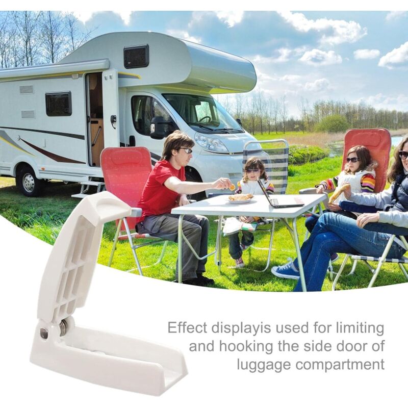Kit de loquet de porte de remorque de camion en acier inoxydable 304, support de porte, loquet, pièces de carrosserie de camion. 1,74-1,91 Matériaux de qualité : adoptant du plastique ABS haute résistance, le support de porte pour camping-car garantit robustesse et durabilité, très résistant aux chocs et aux intempéries, difficile à décolorer même après une utilisation de longue durée et facile à entretenir. Crochet Pliable Ressort Loquet De Porte Pour Camping-Car - Boucle De Maintien RV Securite Voyage Anti Vibration 90240912 Maintien Porte Remorque 1., Loquet de porte à bagages pour camping-car : gardez votre porte ouverte en toute sécurité avec ce crochet pliable caché pour portes de camping-car. Application polyvalente : compatible avec différents modèles de véhicules tels que les camping-cars, les remorques et les camping-cars. Pratique et sûr : il garantit que la porte reste ouverte lorsqu'elle est garée, évitant ainsi les risques de sécurité associés à une fermeture accidentelle, améliorant la facilité d'utilisation et la tranquillité d'esprit, et facilitant les déplacements. Le loquet s'ajuste parfaitement, garantissant une ouverture et une fermeture parfaites de la porte. [Large application] Ce compartiment de porte est idéal pour remplacer les fixations, clips et supports endommagés ou cassés Loquet de porte de rangeent pour bagages de caping-car, reorque Loquet de porte à bagages pour camping-car : gardez votre porte ouverte en toute sécurité avec ce crochet pliable caché pour portes de camping-car. Il maintient efficacement votre porte ouverte et stable, évitant ainsi les fermetures accidentelles. Idéal pour les activités de plein air et les voyages, ajoutant de la flexibilité pour répondre à différents besoins., 5., Pratique et sûr : il garantit que la porte reste ouverte lorsqu'elle est garée, évitant ainsi les risques de sécurité associés à une fermeture accidentelle, améliorant la facilité d'utilisation et la tranquillité d'esprit, et facilitant les déplacements.