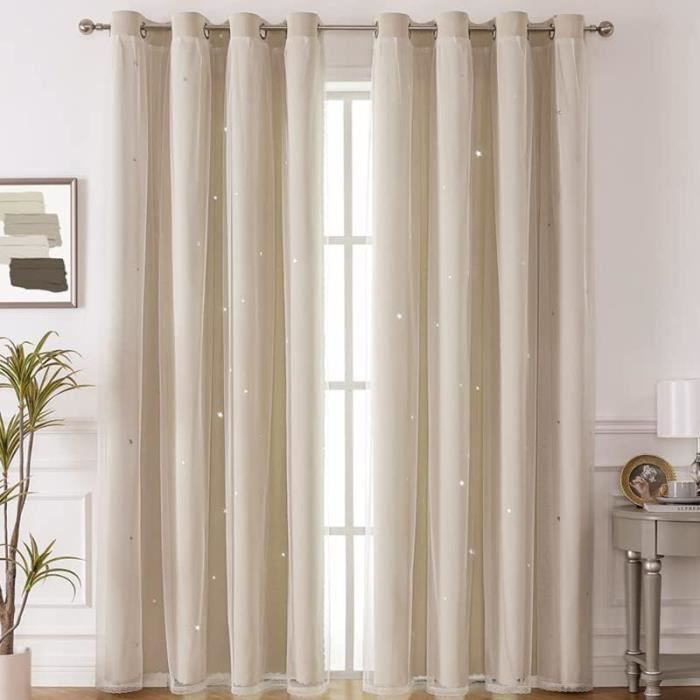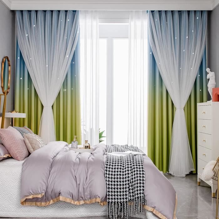 Si vous avez des problèmes, n'hésitez pas à nous contacter. NICETOWN Rideaux Occultants Thermique - Blanc Voilage Rideaux Arc-en-Ciel d' étoile Perforées Decoration Draperies Lumineux Bloquer pour Enfant, L 132 x H 240 cm, Coloré, 2 Panneaux Magasinez chez pour Rideaux pour bébés et enfants. Profitez de la livraison gratuite sur pratiquement tout 132 x 160 cm : la taille totale des rideaux dégradés est d'environ 132 x 160 cm, 2 pièces dans un ensemble, avec une fonction d'isolation thermique pour maintenir la température dans la pièce, ce qui aide à économiser de l'énergie. Sur les rideaux occultants imprimés se trouvent des motifs d'étoiles creuses qui scintillent comme des étoiles lorsque la lumière passe. TopLLC Blackout Rideaux Occultants, Rideaux pour Chambre à Coucher... Cette fonction aide à garder la pièce au chaud en hiver et au frais en été. Design unique : les rideaux décoratifs ont un design intégré unique à deux couches, le tissu transparent est léger et transparent, créant une atmosphère romantique et brumeuse. Rideaux Dégradé Couleur Motifs Creux Dream Star Blackout Rideaux Pour Chambre D'enfant, Ombre Arc Rideaux Chambre Fille