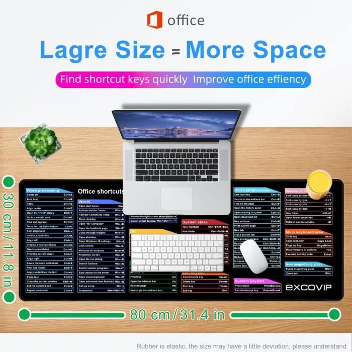 Format XL 90x40cm, il affiche tous les raccourcis claviers essentiels pour gagner en productivité. La base en caoutchouc antidérapante tient bien sur le bureau Notre sous-main Excel contient de nombreux conseils et formules utiles, ce qui le rend idéal pour les débutants. Tapis Clavier Ces Tapis De Souris Affichent Tous Les Raccourcis Clavier Tapis Souris Microfibre Antidérapant Qualité Facile à nettoyer, il s'adapte à toutes les souris d'ordinateur standard. 【Matériaux de haute qualité】 Le excel shortcuts tapis de souris est fabriqué en tissu de haute qualité et en caoutchouc naturel antidérapant. Que vous soyez professionnel, étudiant ou débutant, ce tapis de souris vous facilitera l'apprentissage et le travail au quotidien. Windows, Office, Excel, Adobe Photoshop Touches De Raccourci Étendues Grand Tapis De Souris... Argumub Excel Tapis de clavier Shortcuts, sous-main Excel pour 【Améliorez vos compétences Excel】Le excel shortcuts tapis de souris est bien plus qu'un simple tapis de souris, c'est aussi un outil puissant pour améliorer vos compétences Excel. C'est un excellent outil pour votre travail et peut améliorer considérablement votre efficacité. 【Description complète】Ce excel shortcuts tapis de souris est divisé en 5 sections, comprenant les raccourcis clavier Excel les plus utilisés, les descriptions de fonctions, les astuces pratiques et les formules.
