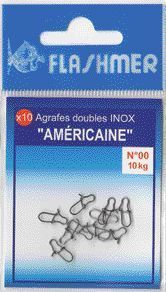 Utilisation pour les pêcheurs exigeants et les pêcheurs en mer. Mousqueton en inox avec archet rond pour un jeu d'appât optimal. Fabriqué en acier inoxydable de qualité supérieure., Agrafe Americaine agrafe pour panneau de porte, 30 pcs, agrafe panneau de porte - .c Vendu par 1 sachet de 10 AGRAFE "AMERICAINE" N° 1 - sachet de 10 - Sport Mousqueton Inox Flashmer Agrafe Flashmer Fw Rolling + P-SNAP Agrafe Résistance 4-110kg La fameuse agrafe Flashmer, vendue à des dizaines de milliers d'exemplaires: une valeur sûre, simple, efficace, économique. Pour toutes les pêches au leurre