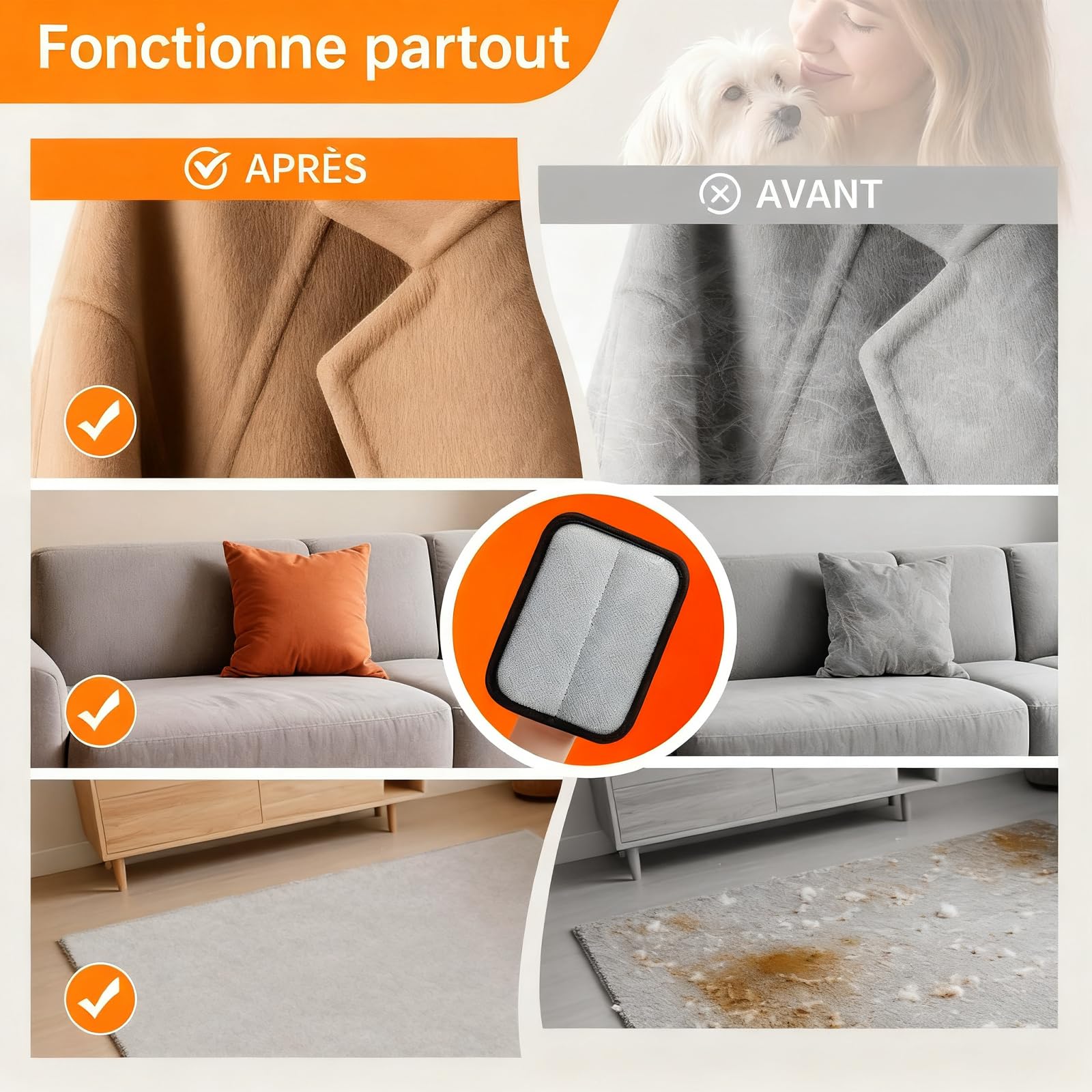 plus confortable, il assure une meilleure couverture et un retrait plus rapide des poils sur toutes les surfaces. Lot De 2 Gant Anti Poils Animaux Amélioré – Gant Poils Animaux Ameliore Gant Poils Animaux Reutilisable Electrostatique Gant Poil Chat Gant Poil Chien Ramasse Poils Animaux Pour Meubles Vetements Tapis Voiture Gant De T 92358744 Description du produit Gardez votre maison sans poils et vos compagnons bien entretenus avec notre lot de 2 gants anti poils animaux nouvelle génération. DOUX POUR LES ANIMAUX, EFFICACE SUR LES SURFACES – Utilisé comme gant chat brossage ou comme gant de toilettage pour chien, il retire les poils morts en douceur sans irriter la peau. Solide et durable, il permet d’enlever les poils animaux facilement tout en respectant la planète. RÉUTILISABLE, LAVABLE & ÉCOLOGIQUE – Contrairement aux rouleaux adhésifs jetables, ce gant ramasse poils animaux est réutilisable et lavable. Utilisé comme gant poil chat ou gant poil chien, il retire les poils morts en douceur et stimule la circulation sanguine, offrant un toilettage agréable à vos animaux. Un outil pratique et incontournable pour garder la maison propre. CONCEPTION AMÉLIORÉE & LOT DE 2 – Ce lot de 2 gant anti poils animaux nouvelle génération est conçu pour un usage quotidien. Polyvalents et efficaces, ils fonctionnent à la fois comme gant poils animaux et comme ramasse poils animaux, adaptés aussi bien aux chiens qu’aux chats. Un véritable gant chat brossage et gant ramasse poils animaux 2-en-1 : pratique, polyvalent et durable – l’accessoire indispensable pour tous les propriétaires de chiens et de chats souhaitant garder une maison propre et un animal bien soigné. Rasoir Anti Bouloche Manuel Réutilisable,Lot De 3 Portable Anti Poils Épilation douce et efficace : Ce gant d'épilation pour chat élimine les poils d'animaux en douceur. Il n'abîme pas la peau de votre animal pendant le... Sa conception double face, avec maille respirante et TPR souple, garantit confort et durabilité.