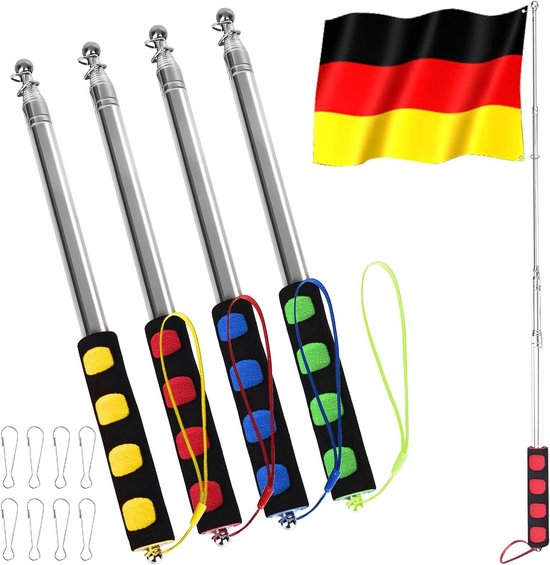 Lorsqu'il est entièrement déplié, il mesure 200 cm et peut être plié jusqu'à un format compact de 27 cm pour un rangement facile. Ces mâts peuvent accueillir des drapeaux jusqu'à 3 x 5 pieds, parfaits pour les guides touristiques, le camping en plein air et pointeurs pour les enseignants. Mât de Drapeau Télescopique en Acier Inoxydable Noir 2 Mètres/78,74 Pouces avec 8 Crochets et 10 Attaches de Câble en Plastique pour Camping, Tourisme, Enseignement et Activités de Plein Air En acier inoxydable, ils passent de 27cm à 2m en un clin d'œil u2013 idéal pour planter un drapeau en camping, rando... Taille : la longueur peut être ajustée... Facile à transporter : avec sa conception portable, ce mât télescopique est plus pratique à utiliser que les grands et encombrants. Mât de Drapeau Télescopique en Acier Inoxydable Noir 2 Mètres Il peut facilement se glisser dans votre poche ou votre sac à dos lorsqu'il n'est pas utilisé, et chaque mât de drapeau est livré avec une ficelle pour l'accrocher facilement au poignet. Utilisations polyvalentes : ces bâtons télescopiques peuvent être utilisés non seulement mâts de drapeau, mais également pour l'enseignement, les voyages, l'alpinisme, le camping et les défilés. Mat Telescopique Pour Drapeau JSMTKJ 3 Pièces 1.2 M Mât De Drapeau Portable Extensible, Télescopique MâT De Drapeau En Acier Inoxydable Pour Les Voyages, Camping, Compétitions, Les Professeurs De Guide Touristique Mat Drapeau Conception télescopique : avec une conception télescopique, notre mât de drapeau de guide touristique peut être ajusté à la taille souhaitée dans une longueur d'étirement maximale de 2 m. Contenu de l'emballage : Vous recevrez 2 mâts télescopiques portables et 4 attaches. Ces mâts peuvent accueillir des drapeaux jusqu'à 90 cm x 150 cm, ce qui les rend parfaits pour les guides touristiques, le camping en plein air et comme pointeurs pour les enseignants.