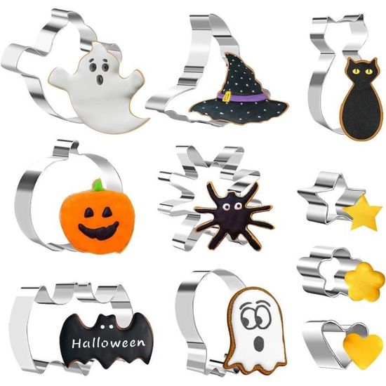 Emporte-pièces en métal Halloween - 4 pièces - Emporte Lot De 11 Emporte-pièces D'Halloween – Citrouille, Fantôme Lot de 4 emporte-pièces fantômes : vous obtiendrez 4 tailles différentes d'emporte-pièces en forme de fantôme, qui répondront à vos différents besoins. Préparez-vous à vos décorations d'automne pour Halloween avec cet ensemble amusant, vous allez certainement les adorer Pour réaliser des desserts variés : tartelettes, biscuits, sablés, ces emporte-pièces permettent de découper les pâtes à tarte, la pâte à sucre mais également la pâte polymère pour des modelages horrifiques ! Avec ces 4 découpoirs finement taillés, réalisez des biscuits nets et réguliers
