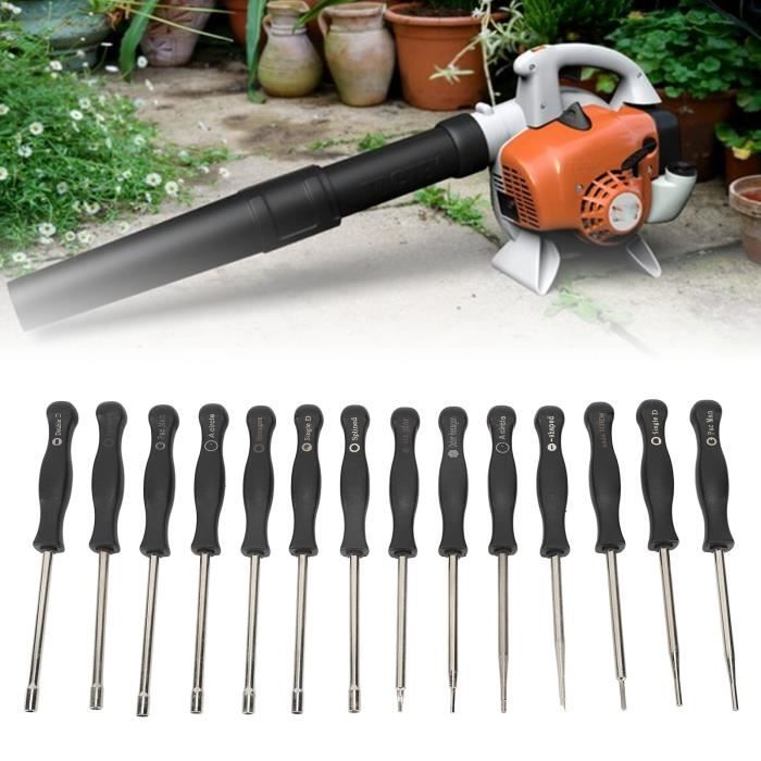 1., Large application : l'outil de réglage de la vis pilote du carburateur remplace les VTT, UTV, motoneiges, etc. MOO Outil De Réglage De Vis Pilote Outil De Réglage De Vis Pilote De - Bricolage Outil polyvalent pour plusieurs véhicules : cet outil de réglage de vis pilote est un incontournable pour les propriétaires de VTT, UTV et motoneige. Il fournit une solution professionnelle pour s'attaquer aux vis difficiles d'accès, garantissant un mélange d'air et de carburant optimal pour de meilleures performances du moteur et un meilleur rendement énergétique. Son design compact garantit un rangement et un transport faciles, vous permettant de l'emporter avec vous partout où vos aventures vous mènent. Pour Carburateur Moto ETO- Pistolet De Serrage De Vis D'expansion Outil De Réglage D'ancrage Mural, Pistolet à Rivets Outil Tête Coudée 90° Carbu Il est conçu pour atteindre les vis de mélange d'air et de carburant difficiles d'accès sur la plupart des motos multicylindres, ce qui en fait un outil polyvalent adapté à une large gamme de véhicules. Cela vous fait gagner du temps et de l’énergie par rapport aux méthodes traditionnelles Conception compacte avec portée étendue : la longueur de 18,9 pouces et la tête inclinée à 90° facilitent l'accès et le réglage des vis pilotes dans les espaces restreints. Matériau et fiable : fabriqué à partir d'ABS et de fer de qualité supérieure, cet outil de réglage du carburateur offre une durabilité exceptionnelle et des performances durables. Garosa outil de moto Outil de réglage de vis pilote de carburateur 16 Le traitement de fin améliore fiabilité, garantissant qu'il peut résister à une utilisation intensive et fournir des résultats cohérents. Il est dédié au réglage de la vis pilote du carburateur, adopte une conception de type engrenage, facilite le réglage fin. [POIGNÉE ERGONOMIQUE] Ce jeu de...