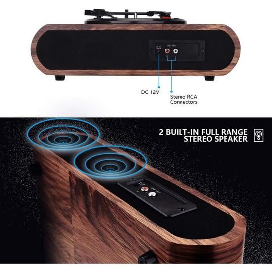Le cuir PVC personnalisé, les vis métalliques de style rétro, les boutons électroplaqués et les finitions en cuir classique sont de bon goût et deviendront le point central de votre maison, de votre fête ou de votre célébration familiale. Découvrez notre analyse approfondie de la platine vinyle Voksun : un design vintage allié à la technologie Bluetooth pour une expérience d'écoute unique La conception de la mallette permet de la déplacer facilement. Vous pouvez la connecter à un amplificateur externe via la connexion à 2 canaux RCA à l'arrière de la platine., ♬【Bluetooth 5., 0】With Bluetooth 5., 0, vous pouvez lire de la musique à partir d'appareils Android OS IOS ou d'autres smartphones, l'appareil peut entièrement répondre à vos différents besoins. Si vous disposez d'un excellent système audio, vous pouvez bien sûr le raccorder à ce lecteur via une connexion RCA ou AUX et profiter de l'effet surround. Connexion Usb Aux Rca Platine Vinyle, VOKSUN Tourne-Disque Bluetooth Avec Haut-Parleur, Entraînement Par Courroie 33/45/78 TR/Min, Boîtier, Fonction Vinyle-MP3/USB /Aux-In/RCA (Bleu Mallette Portable Design Cuir PVC Style Vintage Remarque : le produit doit être stocké dans un endroit sec. ♬【Système Stéréo】Le lecteur dispose de deux haut-parleurs intégrés. Pour équilibrer la résonance et les effets de basse, nous limitons la puissance à 5 watts et chaque puissance est adaptée à une utilisation quotidienne. Single Play peut enregistrer 1 à 2 chansons et s'adapter aux vitesses 78 ; Extend Play peut enregistrer moins de 5 chansons et s'adapter aux vitesses 45 ; Long Play peut enregistrer 10 chansons ou plus et s'adapter aux vitesses 33., Des performances stables et professionnelles pour répondre à vos besoins musicaux. VOKSUN Platine Disque, Bluetooth Tourne Disque Rétro Portable Une entrée AUX/USB/carte SD de 3,5 mm et un disque pouvant enregistrer des fichiers MP3 vous donnent la sensation du temps passé. Tourne-Disque Bluetooth Portable, Platine Vinyle Rétro Avec Haut...