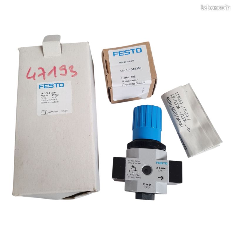Préparation D'air Automatisme FESTO RÉGULATEUR DE Pression Z235 LR 3/8 D Mini 162580 EUR 45,98 FR Festo LR-1/4-D-7-Mini FESTO LR 1/4 D 7 MINI 162583 Régulateur De Pression PAGN 40 10 G18 ... Livraison estimée le mer. 12 nov. mer. 3 déc Achetez 162583 - FESTO - Régulateur de pression, G1/4, 1600 l/min. Farnell® ance propose des devis rapides, une expédition le jour même, une livraison rapide, un vaste inventaire, des fiches techniques et un support technique Préparation de l'air , régulateurs Pressostat Pompe Eau Valve FESTO LR 1/4 D 7 MINI Avec Manomètre
