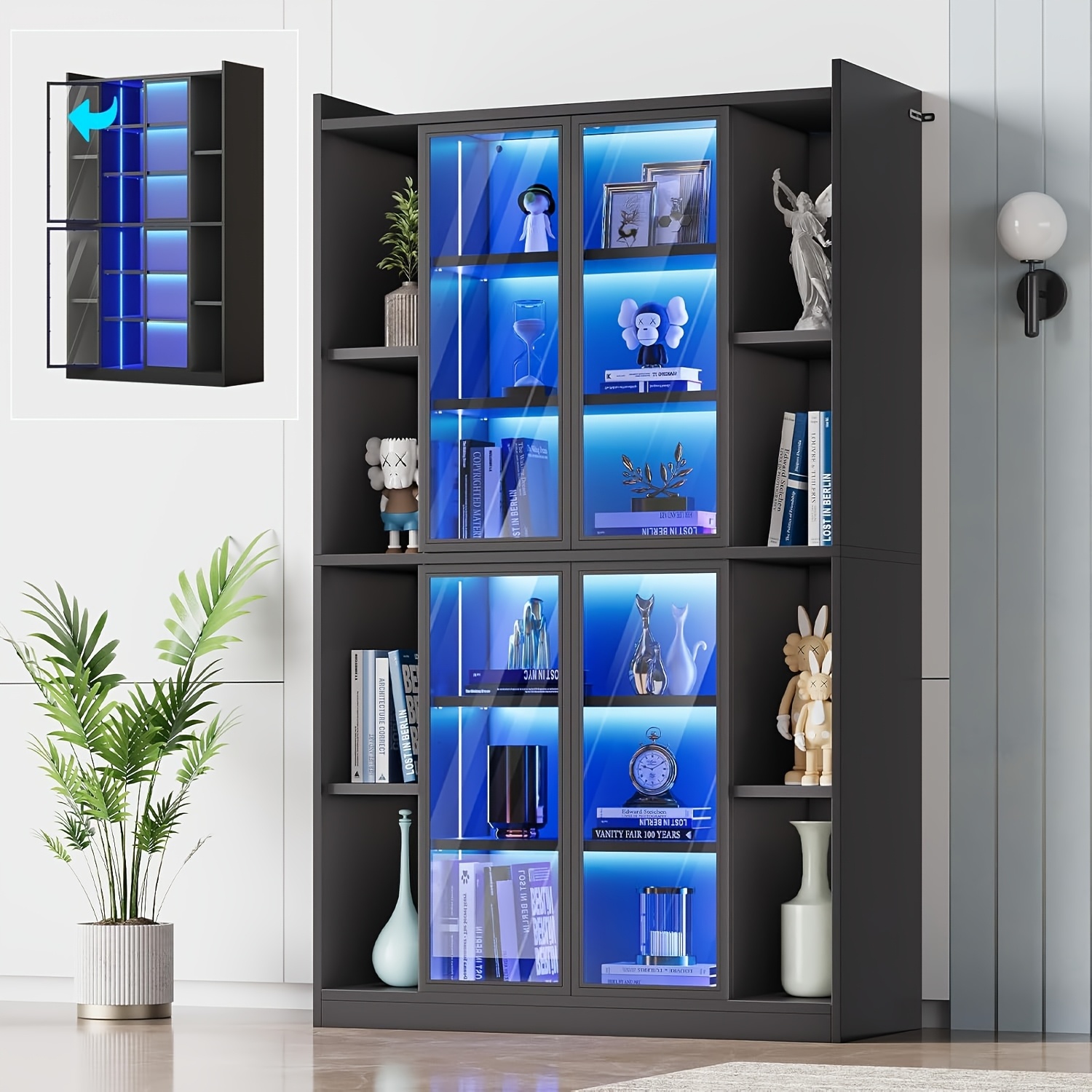 Sa conception sophistiquée garantit le bon déroulement de chaque interaction et présente la fusion parfaite entre technologie et esthétique, tout en améliorant l'expérience utilisateur. 3 lumières LED couleur]Cette vitrine en verre dispose d'une lumière blanche, d'une lumière chaude et d'une lumière bleue, luminosité réglable 25 kg / 55 lb Assemblage requis Une heure et demie Numéro de colis 2 » Capacité extra large : avec ses dimensions de 80 cm de largeur × 165 cm de hauteur × 35 cm de profondeur, cette vitrine en verre offre un espace intérieur spacieux. Installation facile : chaque composant de la vitrine est clairement étiqueté et numéroté, ce qui garantit un montage rapide et simple, sans que vous ayez à vous soucier de procédures d'installation complexes. Dotée de quatre étagères réglables, elle offre un espace de rangement flexible pour les objets de collection, les articles de décoration et autres objets, répondant ainsi à divers besoins d'exposition et de rangement. Ses portes vitrées caractéristiques allient un aspect élégant à une utilisation facile : une légère pression suffit pour les ouvrir et dévoiler vos trésors. Vitrine Avec Portes En Verre Et éclairage LED, Support En Verre Trempe A 4 Niveaux Vitrine En Verre De Collection Curio Vitrine Noir 96400590 L'éclairage s'allume automatiquement lorsque vous vous approchez et s'éteint progressivement lorsque vous vous éloignez, ce qui permet de réaliser des économies d'énergie efficaces. Elle offre un espace de rangement sûr et une présentation élégante pour les œuvres d'art, les livres, les trophées et autres objets. Une expérience intelligente : la vitrine verticale est équipée d'un système unique de capteurs de mouvement intelligents. Éclairage LED à trois couleurs : Cette vitrine dispose de trois modes d'éclairage LED : lumière blanche vive pour une présentation détaillée, lumière ambiante chaude pour une atmosphère cosy, et lumière bleue pour un effet visuel mystique et envoûtant Vitrine éclairage Tricolore Capteur Vitrine En Verre, Armoire Moderne En Verre à Quatre Couches, Meuble Avec Porte Et Serrure, 4 Étagères, LED, Pour Chambre Et Salon (Noir-LED, 1 Porte, 4 Étagères Meuble Exposition Collection Poussière Éclairage tricolore : la vitrine dispose de trois modes d'éclairage LED : une lumière blanche vive pour présenter les objets exposés dans les moindres détails, une lumière ambiante chaude pour créer une atmosphère confortable et accueillante, et une lumière bleue rêveuse pour obtenir un effet visuel séduisant et mystique.