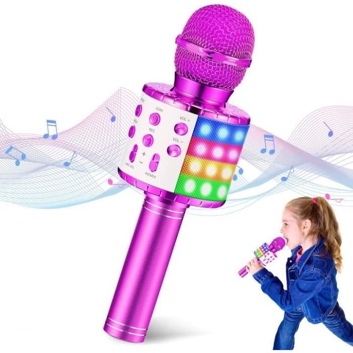 Le son est clair et assez fort pour une petite fête. Taille mini : même les petits de 3 ans peuvent le tenir. Sécurité : coins arrondis et surface lisse Expérience audio haut de gamme : mini système de karaoké avec deux microphones pour les duos entre parents et enfants ou les groupes. Cadeau Fille 2 Ans Micro Karaoke Enfant Sans Fil Avec 2 Micro, Portable Karaoku00e9 Bluetooth Avec Magique Voix Change Et LED Lumiu00e8re Qualitu00e9 Sonore HiFi Mini Microphone Karaoku00e9 Jouet Complet Pour Fille Micro Karaoke Enfant avec 2 Micro sans Fil Bluetooth,Cadeau Fille 3-12 Ans,Bluetooth Portable avec Effets de Changeur de Voix et Lumières LED,pour Enfant Adulte Fille Cadeau Chanter Ambiance immersive et interactive : l'éclairage LED dynamique se synchronise avec les rythmes musicaux, augmentant le plaisir de la performance et captant l'attention des enfants. La durée de vie complète de la batterie permet 10 heures de chant ininterrompu, avec un temps de veille pouvant atteindre 360 heures Les lumières LED pulsent au rythme de la musique, créant une atmosphère attrayante. Machine Karaoke Machine U00e0 Karaoké Pour Adultes Et Enfants Avec... Micro Enfant Ankuka Micro Sans Fil Avec 2 Micro, Portable Karaoké Facile à transporter pour les événements en plein air et les voyages. Avec cinq effets vocaux magiques (Naturel, Monstre, Enfant, Homme, Femme) et une réverbération réglable pour une ambiance live de qualité KTV. Mini haut-parleur pour les fêtes : compact et léger, il peut être facilement tenu dans la main par les enfants.