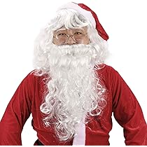 Déguisement Pere Noel HOWAF Kit Accessoires Père Noël, Père Noël Perruque Et Barbe De Pere Noel Avec Lunettes De Père Noel Métal Rondes Pour Adulte Noël Déguisements Déguisement Noel