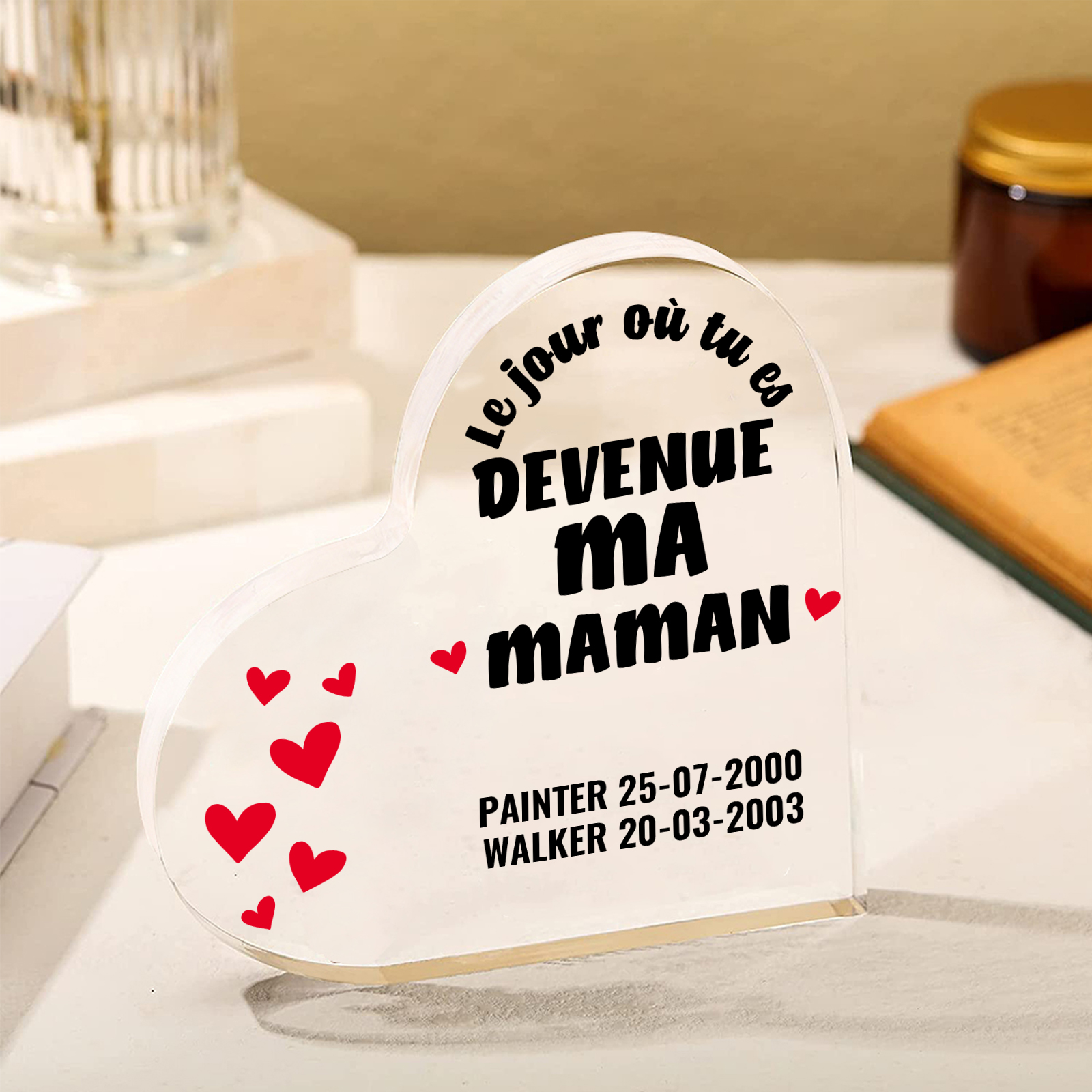 Déco Inspirante : À poser sur un bureau, dans une chambre ou dans un coin souvenir pour renforcer les liens familiaux Design Émotionnel : Silhouette mère-fils sous un arbre, avec cœurs rouges et oiseaux, transmettant tendresse et force Qualité Durable : Fabriqué en acrylique transparent de haute qualité avec impression nette et résistante Plaque Inspiration Amour Maternel À Maman - Plaque Acrylique Coeur Personnalisé Avec Photo Et Texte Déco De Maison | – FR Art Mural Famille Commandez Putuo Decor Cadeau Sœur Acrylique Forme Cœur – Même Lorsque Je Ne suis Pas Là, Je T’Aime Toujours, Message Émotion avec Papillons Et Fleurs Putuo Decor Décoration Fleurie – À ma Fille – Message de Maman à Distance – Cœur Floral Acrylique · Prix membre Prime. -30 % 8,39€8,39€. Expédié depuis 1 pièce Cadeaux pour père de la part de la famille et des amis cœur en