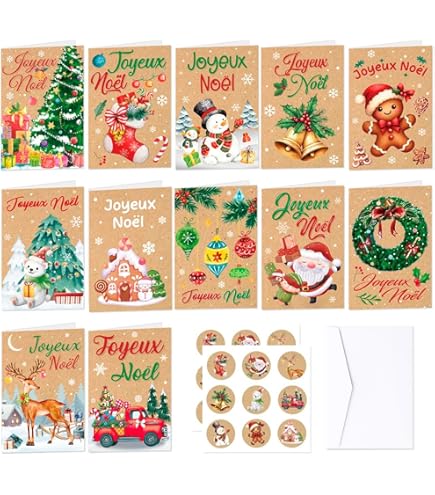 Design Unique: Nos cartes de Noël sont disponibles dans une variété de modèles de Noël classiques aux couleurs vives, présentant une atmosphère festive de Noël. Cartes de vœux - Joyeux Noël - Lot de 10 - Enveloppes en papier Kraft - Cartes vierges BELLE COMMODE Cartes de vœux - Carte de Noël pop-up - Chèque cadeau 3D - Carte de Noël - Pop-up pour fête de Noël - Avec enveloppe - Parfait pour 9,24 Matériau: La carte de Noël est fabriquée à partir de papier de haute qualité, avec une surface lisse., Taille: 12x15 CM. Carte de Noël est de couleur rouge et vert classique, avec des éléments de Noël tels que des sapins de Noël, des flocons de neige, des bonhommes de neige, etc. Cartes de vœux à l'aquarelle pour Noël - Thème sapin - Aline Imagine - Aquarelle Inscriptible: L'intérieur des cartes de Noël est vierge, ce qui est pratique pour écrire des mots chaleureux ou des bénédictions. 12PCS Noël Cartes de Vœux Joyeux Noël Cartes de Vœux avec Enveloppes Noël Cartes en Français Noël Cadeau pour Famille Amis Collègues 24 Pièces De Cartes De Joyeux Noël, Cartes De Noël Avec Enveloppes Et Autocollants, Cartes De Joyeux Noel Cartes De Noel Avec Enveloppes Et Autocollants Cartes De Noel Joyeuses Fetes Cartes Cadeaux De Noel