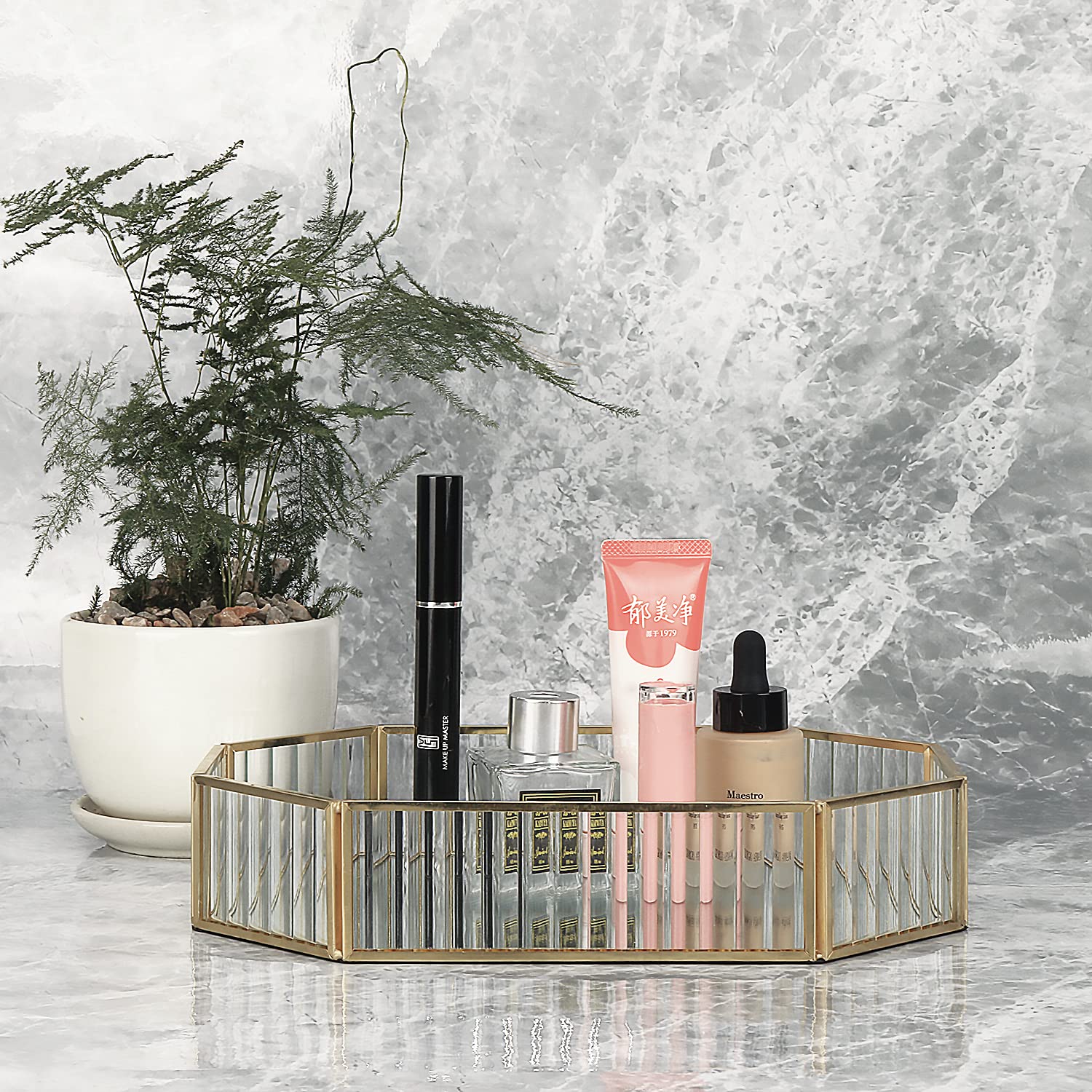 Miroir de maquillage plateau - France Plateau Miroir Decoratif LINDLEMANN Plateau De Courtoisie Décoratif En Cristal Avec Miroir Pour Commode, Parfum, Maquillage, Cosmétiques, Bijoux, Bibelots, Organisateur De Rangement Pour Salle De Bain, Comptoir De Noël Plateau Decoratif Doré Dimensions : 25 x 5,6 cm (L x H)., Poids : 850 g. Description : Les gens peuvent utiliser ce plateau dans la salle de bain, le salon, la chambre, la salle à manger, qui peut être utilisé pour organiser le parfum, les soins de la peau, les bougies, les bijoux, les bonbons, les gâteaux. Contenu du paquet : 1 1 plateau en cristal (argent, 25 cm) Cristaux de qualité supérieure, plateau en verre miroir avec base superbe et robuste. Cadeau exquis pour les anniversaires, Noël, mariages, anniversaires de mariage ou toute occasion particulière Design de forme unique, adapté pour la décoration de la maison, la décoration de mariage, le centre de table, l'organisation de commode, le cadeau de vacances. Design de forme unique, adapté pour la décoration de la maison, la décoration de mariage, le centre de table, l'organisation de commode, le cadeau de vacances. Le plateau en cristal est fabriqué en métal et verre de haute qualité, ce qui rend le plateau sans décoloration, antirouille et robuste. Plateau de maquillage en cristal avec miroir - Plateau... Il y a un miroir en métal sur la surface du plateau, afin d'éviter les chocs ou les chutes au sol. Ce beau plateau décoratif peut attirer l'attention des gens, il est si brillant, absolument élégant et superbe.