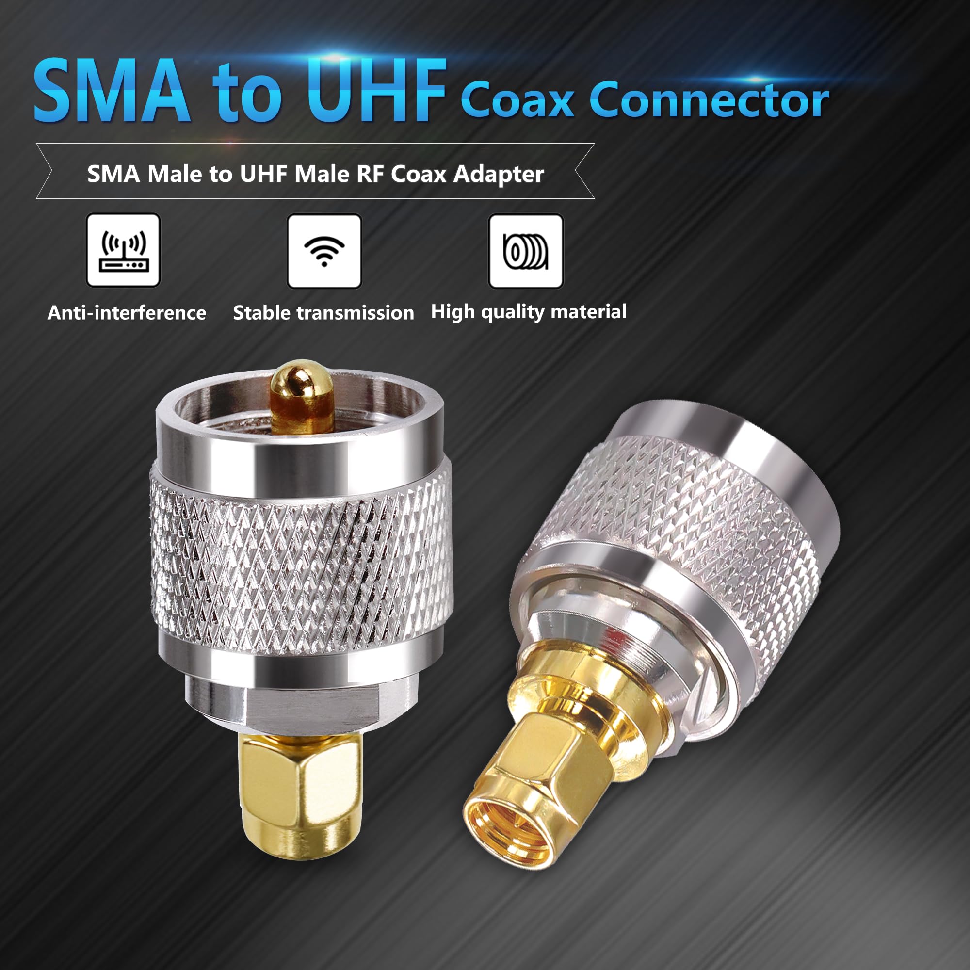 Matériau de qualité: fabriqué en cuivre, moins de perte de signal, vitesse de transfert plus élevée, utilisation durable et durable. Spécifications: Matériaux: cuivre Couleur: Argent, Or Plage de températures: -65 à +165 °C (câble PE -40 à +85 °C) Impédance: 50Ω Tension de fonctionnement: 335V max. Durabilité et performance: Conducteur interne en cuivre pur, impédance de 50ohms, garantissant durabilité et recyclage. Adaptateur type N mâle vers SMA mâle Installation facile: Installation sans outil, La connexion filetée assure une connexion sûre et fiable entre le câble et l'appareil. Adaptateur TNC-mâle vers SMA-femelle Accessoire Radioamateur FPV Adaptateur Antenne Uhf Male 2 Adaptateurs SMA Mâle Vers PL259 Mâle TUOLNK - Pour Radio CB, Antennes - Cuivre Pur, Faible Perte Antenne Cb Adaptateur Antenne Radio Adaptateur de haute qualité garantissant une faible perte de signal et une bonne conductivité. Installation facile: Installation sans outil, La connexion filetée assure une connexion sûre et fiable entre le câble et l'appareil