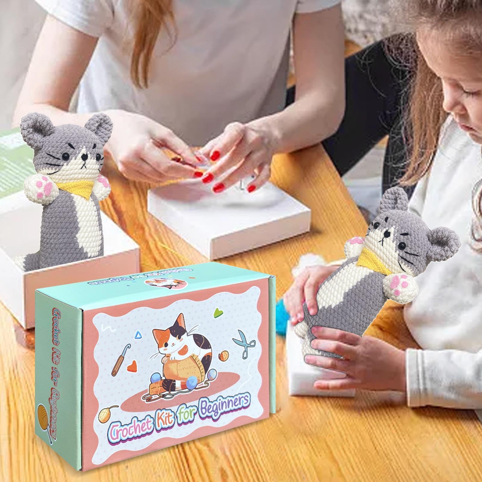 Dimensions : 16,8 x 13,5 x 5,6 cm. Découvrez le kit de crochet Chat destiné aux débutants gauchers et droitiers qui vous permettra d'apprendre à crocheter facilementcet adorable chat 1., Créez 4 chats colorés : créez 4 chats mignons et colorés en différentes nuances : gris, jaune, rose et marron. Matériaux de haute qualité : le fil spécialement fabriqué dans notre kit de crochet pour débutants est conçu pour éviter la casse du fil, assurant un processus de crochet lisse et sans entrave. Aucun outil compliqué n'est nécessaire, il suffit de suivre les instructions, vous pouvez rapidement tricoter de jolis chats animaux Kit complet de crochet : nos kits de crochet pour débutants adultes et enfants comprennent 12 fils, des instructions, des tutoriels vidéo, du rembourrage, des crochets, 8 yeux, des marqueurs de tricot, des ciseaux, tous les outils nécessaires sont inclus, vous pouvez crocheter 4 chats en 4 couleurs, ou vous pouvez créer votre propre création Vous pouvez scanner le code pour le visualiser vous-même, il est facile à apprendre, adapté pour les adultes et les enfants, très approprié pour les débutants. Kit de crochet pour débutants Kits d¿animaux au crochet en forme de... Il suffit de scanner le code QR fourni dans le manuel pour accéder au tutoriel à tout moment et n'importe où. Kit de Crochet Chat - | Kit de Crochet | Amigurumi Crochet Enfant Debutant Lot De 4 Kits De Crochet En Forme De Chat Pour Débutants Tutoriel Vidéo Crochet Facile Contenu de la livraison : 1 kit de crochet en forme de chat pour débutants, adultes et enfants. Tous les outils sont conçus pour faciliter l'utilisation et le confort, ce qui rend votre expérience de crochet agréable., 4., Parfait pour les débutants : le kit de crochet pour débutants est idéal pour tous ceux qui débutent au crochet, ce kit comprend un guide complet et tous les outils essentiels pour vous aider à démarrer. Profitez d'une expérience de bricolage satisfaisante et créez de jolis cadeaux faits à la main. Caractéristiques : Matériau : fil + plastique. Couleur : gris + jaune + rose + marron.