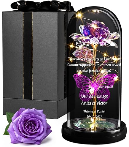 Cadeau d'anniversaire Offrez à votre femme une vraie rose dans un dôme de verre comme cadeau d'anniversaire pour lui exprimer votre amour indéfectible et lui dire que vous serez toujours à ses côtés. Que leur beauté ne se fane jamais comme les fleurs éternelles et qu'elles soient toujours heureuses et belles. C'est un cadeau élégant et attentionné pour épouse, mère, fille, amie, grand-mère, petite amie, etc. La lumière LED émet une lumière douce et chaude en retirant la pièce en plastique au bas et en activant l'interrupteur. Rose réelle Préservée : Trois roses éternelles en pleine floraison sont associées à des fleurs séchées et des herbes pour former une œuvre d'art élégante et attrayante. En plus de lui témoigner votre amour et votre reconnaissance éternelle, vous lui offrez aussi une bonne occasion de fleurir son intérieur en toute saison. Elle pourra ainsi admirer sa rose éternelle des années durant sans la moindre contrariété Rose Véritable Préservée, Rose éternelle Enchantée Faite à La Main Cadeau Ideal Pour Un Anniversaire La Saint Valentin Un Anniversaire De Mariage Noel Ou La Fete Des Meres Bleu 86489068 Cadeaux Idéaux pour Femmes : Le bouquet de roses est emballé dans une boîte cadeau avec une carte de vœux, vous permettant d'écrire vos bons vœux et votre gratitude pour vos proches. pour ajouter non seulement de l'élégance et de la beauté, mais aussi avoir un impact positif sur votre humeur. à diverses occasions comme la Fête des Mères, la Saint-Valentin, Noël, Thanksgiving, anniversaires, mariages, jubilés, etc. (Veuillez noter : Il n'est pas recommandé d'ouvrir le dôme, car cela pourrait endommager les vraies fleurs., ) Rose éternelle Cadeau Pour Maman Rose Eternelle, Rose Véritable Préservée, Cadeau Pour Fleur éternelle Cadeau Femme Anniversaire La rose éternelle pour la fête des mères est le cadeau idéal pour déclarer l’amour qu’on porte pour sa maman. Sa beauté et son élégance en feront un accessoire qui donnera énormément d’émotion Les roses symbolisent un amour beau et romantique, et les roses qui ne se fanent jamais représentent un amour éternel, idéal pour exprimer des sentiments profonds. Cadeau de la fête des mères Montrez votre amour et votre appréciation pour votre grand-mère ou votre mère avec des fleurs éternelles. Profitez de leur beauté florissante chaque jour sans arrosage ni entretien. Description du produit Gratitude infinie à l'égard de maman avec des roses conservées Les roses éternelles ont une signification riche et profonde en tant que cadeau pour votre mère à l'occasion de la fête des mères. Cadeau de Noël Envoyez cette rose intemporelle à votre bien-aimée pour lui exprimer vos meilleurs vœux et lui faire savoir que vous l'aimerez toujours et la soutiendrez pour un Noël plein de bonheur. Décorez n'importe Quel Espace : La rose préservée dans un dôme de verre mesure 5,9 x 5,9 pouces et est parfaite pour décorer une table.
