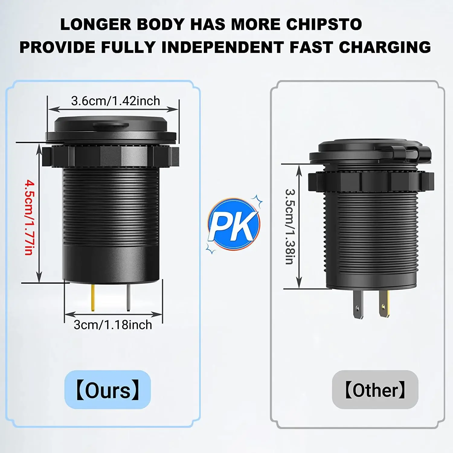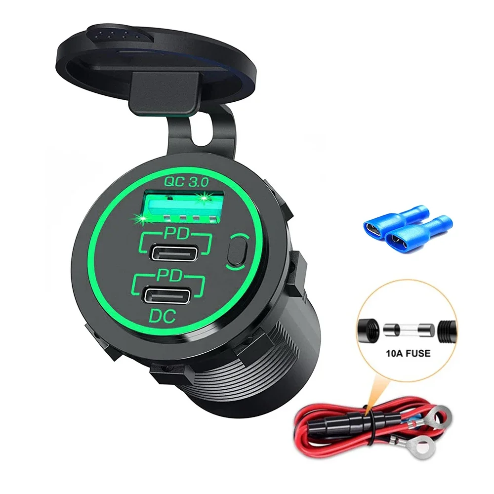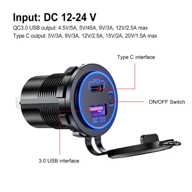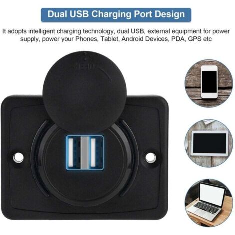 Chargez des iPhones, iPads, Samsung Galaxy, Huawei, Xiaomi, tablettes, GPS, caméras embarquées, batteries externes, appareils photo et bien d'autres appareils en déplacement. Cette prise encastrable combine un design moderne avec une puissance de charge maximale. Idéal pour tous ceux qui veulent charger des appareils en toute sécurité, rapidement et en même temps, que ce soit dans une voiture, un bateau, un camping-car ou un camion. Que ce soit dans la voiture, le camping-car ou le bateau, l'éclairage doux assure des connexions rapides et confortables dans des environnements faiblement éclairés. Le couvercle amovible protège les ports inutilisés de la poussière, de la saleté et de l'humidité et prolonge la durée de vie du chargeur, même dans des conditions difficiles. Chargeur Voiture USB-C 65W Offgridtec Kfz-Ladeadapter, Dual USB Steckdose 12V/24V Mit 65W USB-C & 18W USB-A Anschluss, EIN-/Ausschalter, Schutzabdeckung, PA66 & Kupfergehäuse, IP66, Universell Für Autos, LKW, Off-Grid Systeme Chargeur Usb 65w 1 câble de raccordement et matériel de montage. Éclairage LED pour une utilisation facile : un indicateur LED bleu intégré facilite la recherche des ports, même dans l'obscurité. Étanchéité IP66 : utilisation fiable même en cas d'humidité et de poussière. Le port USB-A de 18 W est idéal pour les téléphones portables et les appareils standard, tandis que le port USB-C de 65 W fournit rapidement de l'énergie pour les ordinateurs portables et les grandes tablettes. Double port USB haute vitesse : doté de deux ports USB intelligents avec une sortie combinée de 3,1 A, cet adaptateur de voiture rétractable charge rapidement les appareils pour iPhone, téléphones Android, iPad et Kindle simultanément Adaptateur de charge USB-C puissant de 65 W pour véhicules 12 V/24 V. Multifonction et sûr : protection contre les surtensions, la surchauffe, les courts-circuits 1 manuel d'utilisation (français non garanti). Points forts : 65 W Power Delivery : charge rapide pour MacBook, iPhone, Samsung Galaxy, tablettes, etc. Adaptateur 12 - 24 V DC à encastrer avec double sortie USB-A (18 W) et USB-C (jusqu’à 65 W). Protection complète (court-circuit, surtension, surchauffe…), capuchon TPU anti-poussière, interrupteur et LED bleue pour un usage facile en voiture, camping-car ou bateau Adaptateur Répartiteur Allume-cigare, Chargeur De Voiture Double Usb 2 Prises 12 V 24 V Avec Interrupteur Voltmetre Led 99164606 Contenu de l'emballage : 1 prise USB-C encastrable avec interrupteur.