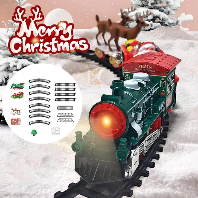 Train Décoratif Pour Sapin Train Electrique Enfant MARSEE Moteur à Vapeur Lumières Sons Wagons De Train Noël Sons Réalistes Piles Peut améliorer les compétences pratiques des enfants, stimuler l'imagination et la créativité. Offrant une expérience sûre et amusante pour vous et vos enfants. Avertissement De Sûreté : Ce sac contient de petites pièces et ne convient pas aux enfants de moins de 3 ans. La conception du crochet de chariot facilite le changement de position. Cet ensemble de train peut être installé autour du bas de votre arbre de Noël comme une décoration ou votre enfant peut l'installer n'importe où dans la maison, vous apporte un esprit de Noël dynamique le soir de Noël. 【Décoration Créative de l'arbre de Noël】: Jouets de train Électrique classique est livré dans une boîte exquise, C'est parfait pour offrir à vos enfants et les surprendra. 【Assemblage facile】: Les pièces de voie du train sont faciles à assembler et à démonter, et peuvent être assemblées dans des configurations circulaires et ovales. Description du produit Les instructions d'utilisation se trouvent au dos du coffret cadeau. Ensemble de jouets de train électrique pour sapin Noël, cadeau parfait Ce Jouet de train électrique à vapeur souffle de la vraie fumée, dispose de lumières LED et d'un bruit de train réaliste. Set de train de luxe amélioré]-L'exquis set de train electrique enfant comprend une locomotive à vapeur, une voiture de passagers, un wagon à charbon, un wagon, 16 rails courbes, 6 rails droits et 2 rails variables, 2 arbres, 1 bouteille d'eau. Nos train a vapeur ancien sont équipés de piles au lithium rechargeables (800 mAh, 3,7 V) et de câbles de recharge USB. Lorsque le train... Avertissement De Sûreté 1 Système de rail unique qui vous permet de créer votre propre forme de rail et la disposition souhaitée, les pièces du rail s'enclenchent facilement et s'installent et s'enlèvent facilement pour faciliter le stockage. De la cheminée aux roues de ce train miniature, tout aussi dynamique qu'un vrai train, vous offrant une atmosphère animée et une expérience plus réelle et intéressante. Le paquet comprend : 1 x Locomotive à vapeur 1 x Voiture de voyageurs 1 x Wagon à charbon 1 x Voiture de père Noël 1 x Bouteille d'eau vide 8 x Rails courbes 4 x Voies droites Conseils : -Veuillez permettre un écart de mesure de 1 à 2 cm en raison de la mesure manuelle. Type de piles : 4 piles AA 1,5 V (non incluses). 【Ensemble de jeu de train classique】: Ce set de train comprend 1 locomotive à vapeur, 1 voiture à charbon, 1 voiture de tourisme, 1 voiture de père Noël, 1 bouteille d'eau vide, 4 pièces de voie droite, 8 pièces de voie courbe. Les circuits de train électrique jouet - Où coencer Nécessite des piles : oui. 【Matériau Sécuritaire】: Notre jouet De train électrique à vapeur en ABS non toxique et inoffensif, avec des bords lisses et sans bavures, robuste et durable, ne vous inquiétez pas de rayer les enfants.
