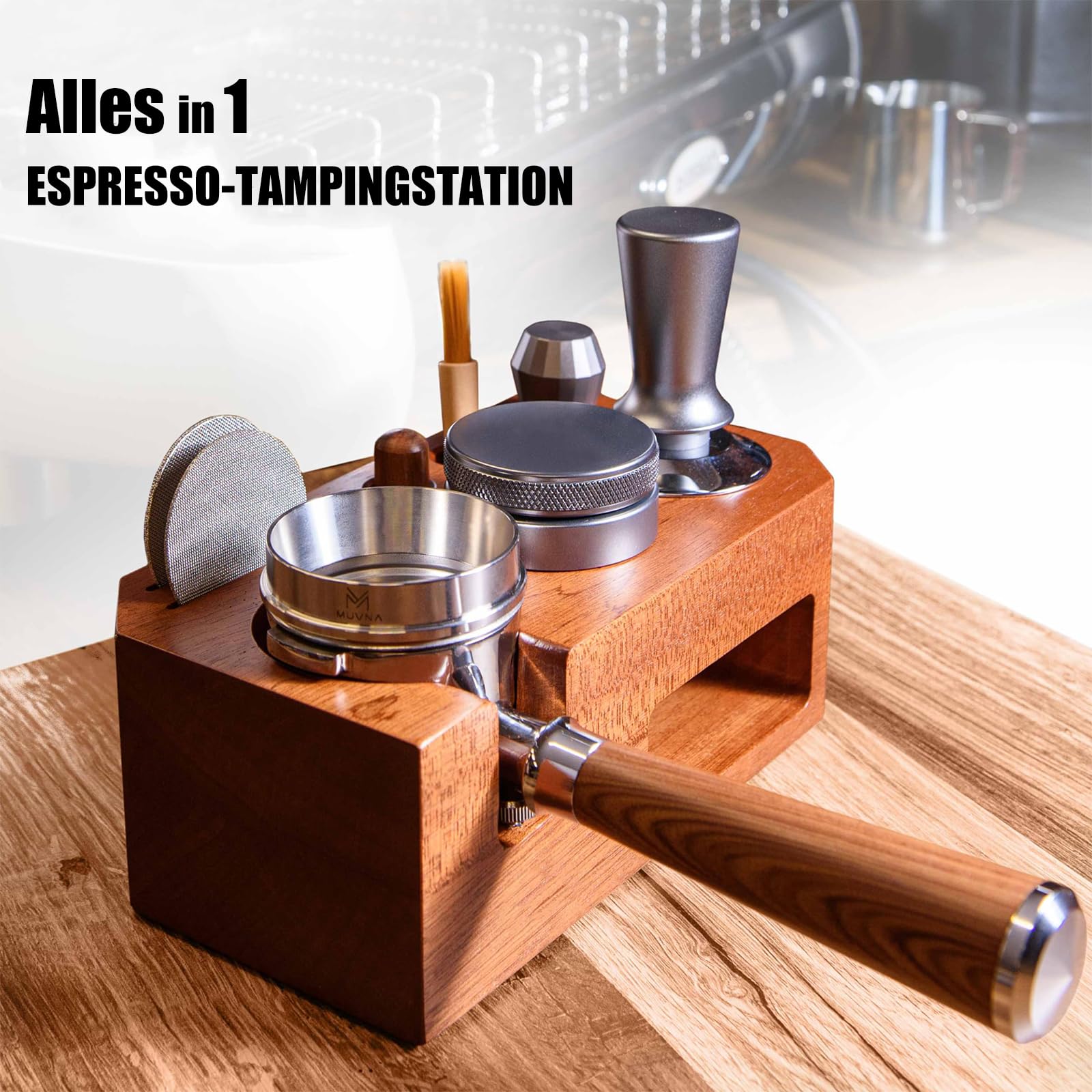 En raison de l'influence de l'environnement de croissance et des facteurs climatiques, le bois présente différentes textures et couleurs Triple fonction : le design à 5 trous de ce tampon en bois vous permet de ranger votre tamper, distributeur et panier à café expresso et résoudre le problème du stockage des accessoires expresso Ajustement : 581 mm Dimensions : 219 x 94 x 68 mm Particularités : Mettez-le dans votre cuisine, café, boulangerie ou coin de bar et ajoutez une touche de couleur à votre expérience de café Chaque morceau de bois raconte l'histoire de sa croissance et fait de chaque station de tampon une pièce unique qui n'existe qu'une seule fois au monde. Facile à utiliser : la base de la presse à poudre convient aux porte-filtres de 51 mm, la conception du capuchon à vis réglable peut ajuster la hauteur appropriée en fonction des différents modèles de poignée, ce qui vous permet de presser doucement la poudre et de réduire les secousses Vous pouvez également opter pour notre boîte de rangement multifonctionnelle pour outils de café et l'offrir à vos amis qui aiment cuisiner du café Facile à nettoyer : après utilisation, vous pouvez essuyer avec un chiffon humide. Après utilisation, vous pouvez l'essuyer avec un chiffon humide. Lambda Coffee® Espresso Tamper 51mm & Tamperstation für Barista Set aus Matériaux de haute qualité : cette station à tamper Barista est fabriquée en bois de noyer naturel. Le noyer est noble et stable, matériau épais et pratique, haute densité, pas facile à fissurer et à déformer En raison de l'influence de l'environnement de croissance et des facteurs climatiques, le bois présente différentes textures et couleurs La base du presse-poudre est adaptée pour les porte-filtres de 51 mm, le design du capuchon à vis réglable peut ajuster la hauteur appropriée en fonction des différents modèles de poignée, ce qui vous permet de presser doucement la poudre et de réduire les secousses. Chaque morceau de bois raconte l'histoire de sa croissance et fait de chaque station de tampon une pièce unique qui n'existe qu'une seule fois au monde Boîte à café - QIILU - Station Tampon en Bois - Multifonctionnelle... Support Pour Tamper Station Tamper - Station De Tamponnage Café Avec Coussin Silicone Hauteur Ajustable Convient Pour Tamper 51 Mm Et 54 Mm Accessoires Barista Pour Espresso Accessoire Café Professionnel Atelier Bar Contenu : 1 station tamper de 51 mm