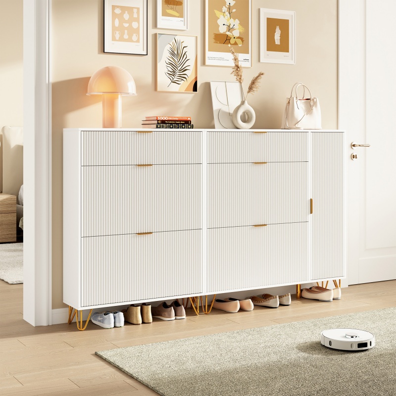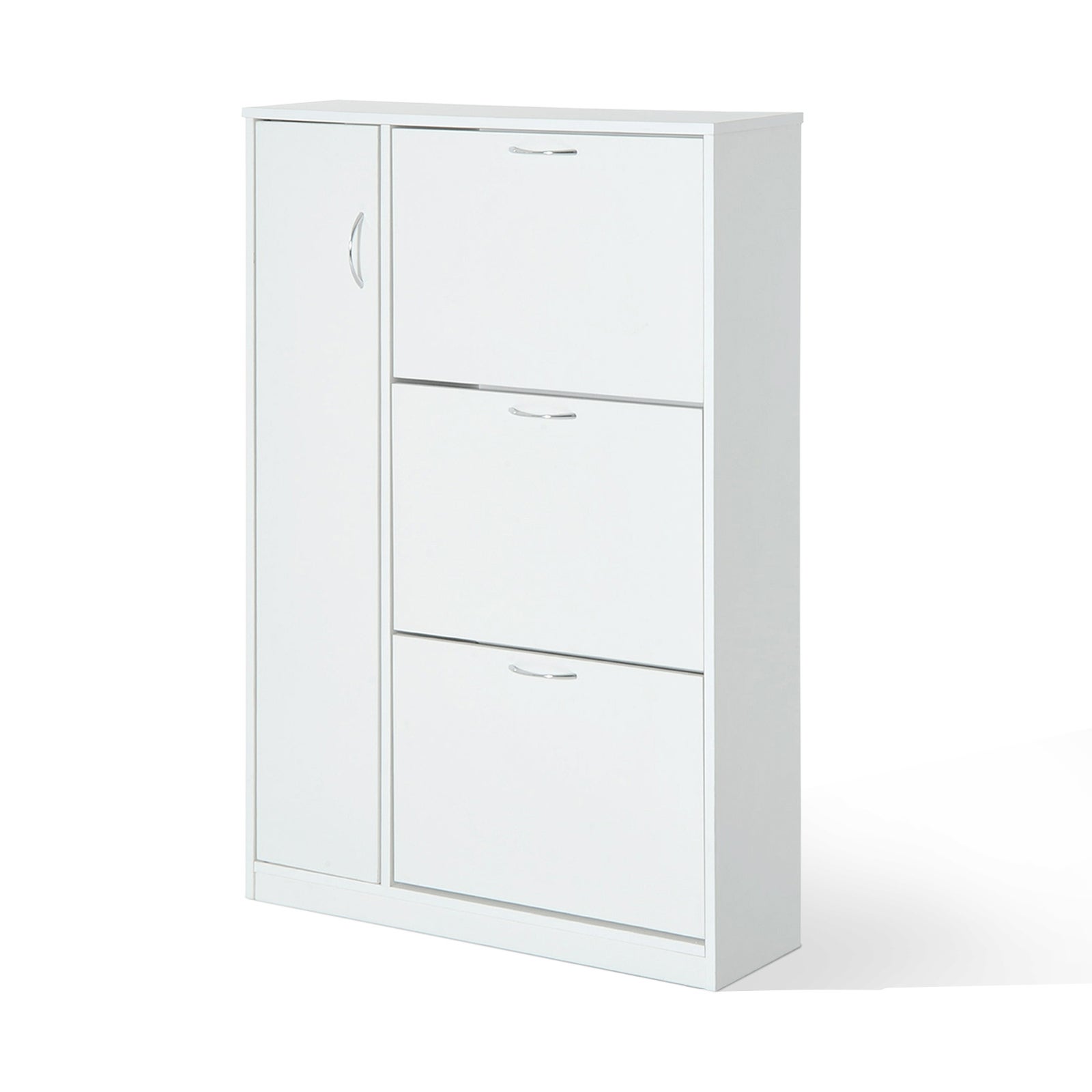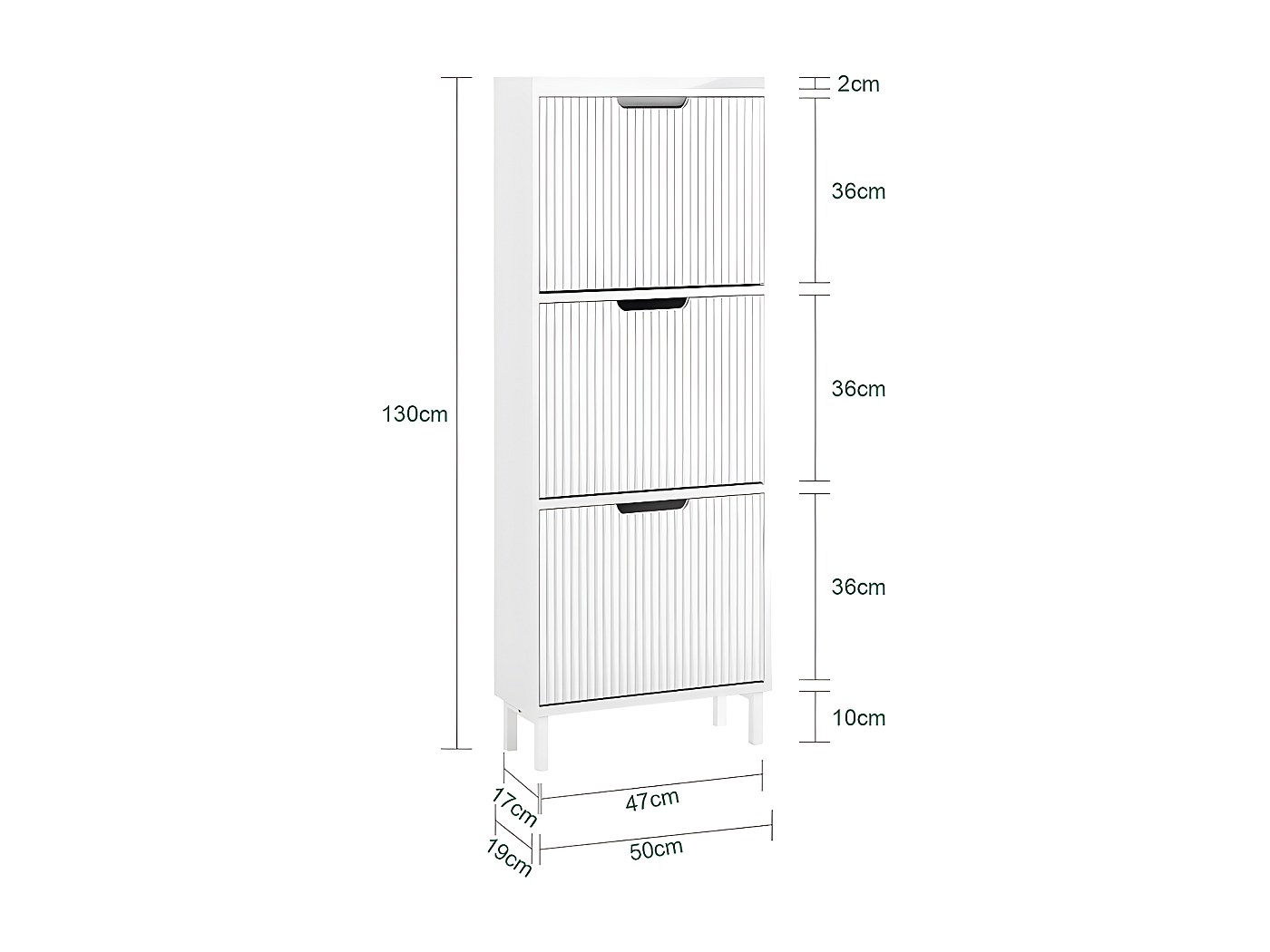 【Solidité et Sécurité】:Fabriqué en MDF et bois, ce meuble allie légèreté et robustesse, avec une capacité maximale de 35 kg. PERCY - Meuble à chaussures 2 Portes abattantes Laqué Blanc Détails du produit : Couleur:blanc laqué Matériau:panneaux de particules Dimensions totales:111., 5l x 24P x 110H cm Hauteur des pieds:12 cm Charge max. Le dispositif antichute à l'arrière garantit une stabilité optimale, même sur des sols irréguliers. Un choix idéal pour ceux qui recherchent une solution de rangement prête à l'emploi et sans tracas. En cas de besoin, notre service client réactif est à votre disposition pour toute question ou assistance. Ce mariage de matériaux lui permet de s'intégrer parfaitement à tous les styles de décoration, qu'il s'agisse d'un intérieur scandinave, minimaliste ou contemporain. WOLTU Armoire Chaussure en Métal, Meuble Chaussure avec 3 Étagères, 3 Portes Abattantes, sans Montage, Blanc W0ITT3066 - Maison Parfait pour les familles ou les personnes possédant une collection de chaussures variées. 【Design Élégant et Polyvalent】:Avec son style moderne et minimaliste, ce meuble à chaussures allie un corps blanc laqué épuré à une bande de décoration en bois naturel sur le côté. Fini le désordre dans l'entrée ! Meuble à chaussures Dlos, Meuble d'entrée polyvalent avec 3 portes... Pied De Meuble Blanc Meuble à Chaussures Kaju Avec 3 Portes Abattantes Blanches Et Structure Effet Marbre Gris 88560463 Meuble Chaussures Design Moderne Pieds Dorés 【Organisation Optimisée】:Grâce à ses 3 portes abattantes, ce meuble offre un rangement pratique et spacieux pour tous les types de chaussures : escarpins, baskets, bottes ou ballerines.