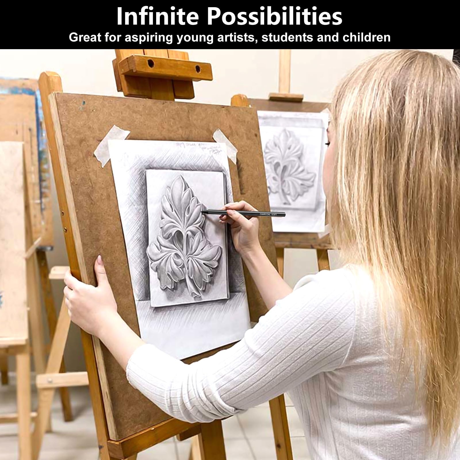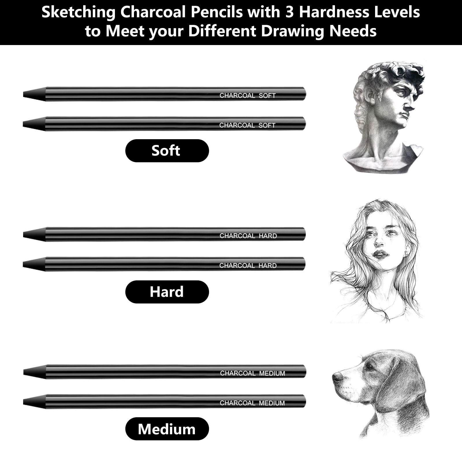 Kit d'art de crayons à dessin, outils professionnels pour artistes, étudiants, enseignants, avec peinture au fusain et graphite. Livraison gratuite Idéal pour les travaux de détail et les lavis de grande surface. Fusains Pour Dessin EiDevo Kit Dessin Professionnel,74 PCS Crayons De Dessin Et D'esquisse Inclus Crayons De Couleurs,Crayons Graphite,Fusain,Aquarelles,Carnets De Croquis,Kit Pour Artiste Crayon Dessin Possibilités de combinaison:S'utilise harmonieusement avec les crayons graphite, les craies Conte et les pastels. Compatible avec tous les types de papier courants, du carnet d'esquisses au papier aquarelle. Diversité d'utilisation : crée des effets d'encre de Chine intenses jusqu'à des dégradés de gris délicats grâce à une pression variable - parfait pour les études de portrait (textures de peau), les représentations de paysage (perspective atmosphérique) et les compositions de nature morte. 6 crayons fusain - Doux - Moyen - Dur - Winsor et Newton - Studio Collection ; Boîte métal de 24 crayons de couleur STABILO Original. 46,00 € ; 24 crayons de... Fusain pour Dessiner, Fusains Crayon Idée de cadeau:Elégamment emballé dans un étui métallique réutilisable avec doublure en satin - Le kit éducatif parfait pour les étudiants en art, la préparation de dossiers ou les dessinateurs amateurs à partir de 14 ans. Utilisation multifonctionnelle : Spécialement conçu pour les études de dessin académiques, les esquisses d'architecture, les illustrations de mode et les dessins à main levée. Permet des techniques mixtes innovantes par superposition de couches.