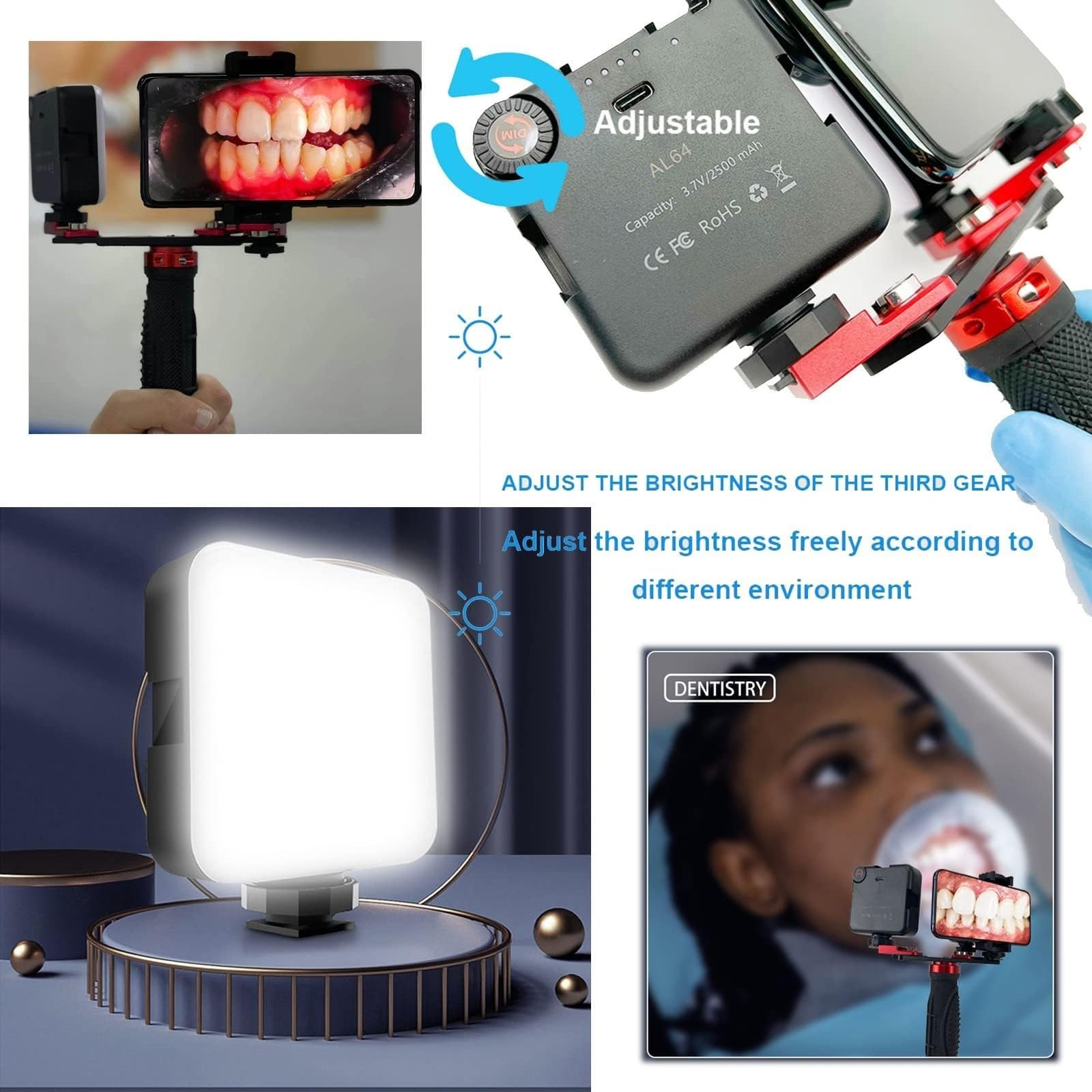 Support de photographie pour téléphone | MM Dental – Laboratoire Dentaire équipement Oral Lumière Froide Lumière Flash Dentaire Mobile De Photographie Dentaire Lampe Remplissage Lumière 6500k ✔ Fonctionnement simple, non limité par l'angle: il est plus pratique d'afficher l'environnement buccal. Lumière LED dentaire orale réglable 20 lampes Mobile Photographie dentaire Équipement oral Puissance: 5W Source de lumière: 20pcs 3528 haute luminosité LED Intensité de la lumière: 32000LX Température de couleur: : 6000-6500K Mode de gradation: Indice de rendu des couleurs réglable: 95 Tension DC: 3., 3V-4., 2V Batterie: batterie au lithium intégrée. ✔ LED de qualité professionnelle : forte collecte de lumière, faible taux de dispersion, pour garantir l'intensité lumineuse de la zone de prise de vue. Éclairez vos séances de photographie dentaire avec notre lampe de flash LED mobile. Normes de sécurité CE, durée de vie de 5000h, et une garantie d'un an Température de couleur standard 6500 K, aucune différence de couleur. Lumière de base dentaire Oral Shade Matching Light Lampe à LED... ✔ Avec trois ensembles de lumières LED réglables. Application : photos pour la prise de l'ombre, communication quotidienne avec le laboratoire, courts clips vidéo, documentation des patients, photos artistiques ❤ Je suis très heureux que vous puissiez visiter ma boutique, je vous souhaite un guichet unique, bon shopping