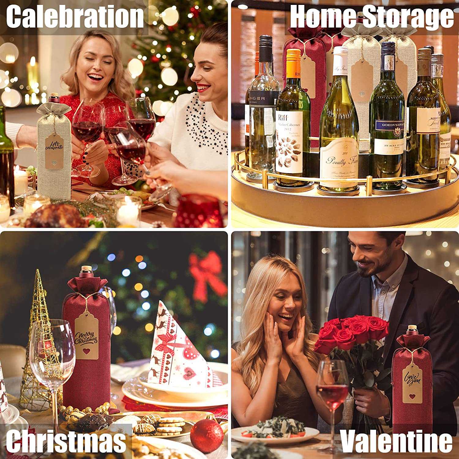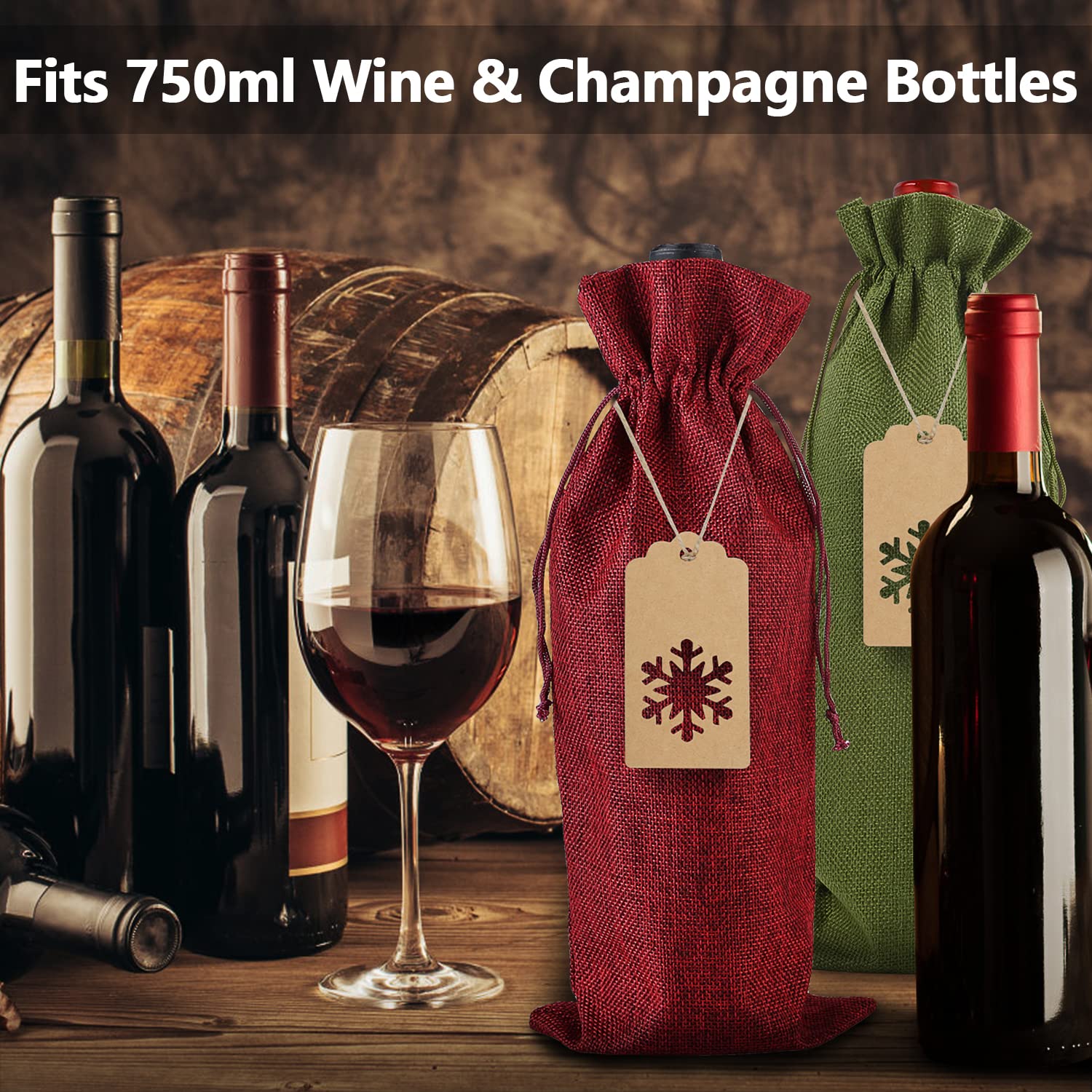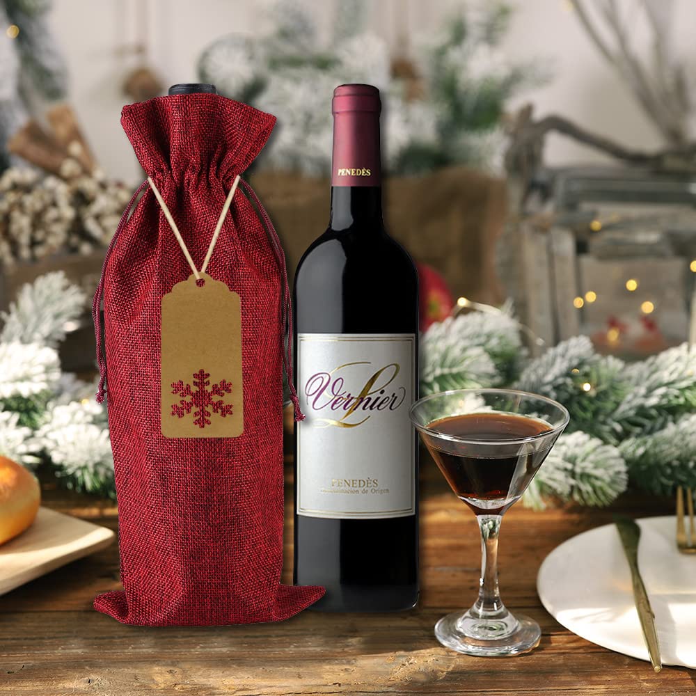 Sac à Vin en Tissu de Lin Simple, Élégant Sac à Main de Vin, Sacs de Cadeau de Vin, Pliable pour la Fête pour le Mariage Toile De Jute En 15 X 20 Cm Avec Cordon De Serrage Pour Lot De 12 Sacs Parfait pour le stockage à la maison, Noël, les mariages, les anniversaires, les festivals et les voyages. Sac de Rangement en lin Multifonctionnel:Le sac-cadeau en lin rétro avec un cordon de serrage intégré peut être facilement fermé et ouvert, et la poche contractée peut isoler efficacement la poussière. Chaque étiquette flocon de neige mesure environ 9., 4 cm x 4., 5 cm, chaque corde en jute mesure environ 10m. Idéal pour Noël et occasions spéciales : Ces jolis sacs en toile de jute sont parfaits pour emballer des cadeaux de Noël, préparer un calendrier de l’Avent, décorer une table de fête, offrir des souvenirs lors d’un mariage ou d’un anniversaire, ou encore accompagner vos créations artisanales Étiquette en papier:avec étiquette en papier et ficelle épaisse, vous pouvez écrire vos bénédictions sur l'étiquette et l'accrocher à la bouteille de vin, ou elle peut être utilisée comme étiquette de numéro de vin, ce qui est plus pratique pour stocker le vin Taille adaptée pour bouteilles:Chaque sac mesure 35 cm x 15 cm, parfait pour contenir la majorité des bouteilles de vin. Sac Pour Cadeau Vin|Sac cadeau pour vin... Utilisations multiples :Cadeaux en toile de jute avec cordon de serrage convient pour emballer des bouteilles de vin et des bouteilles de champagne, pour les protéger de la poussière et les rendre superbes. Taille : Chaque sac pour vin mesure environ 34., 6 cm x 14., 3 cm, peut contenir une bouteille de vin standard de 750 ml.