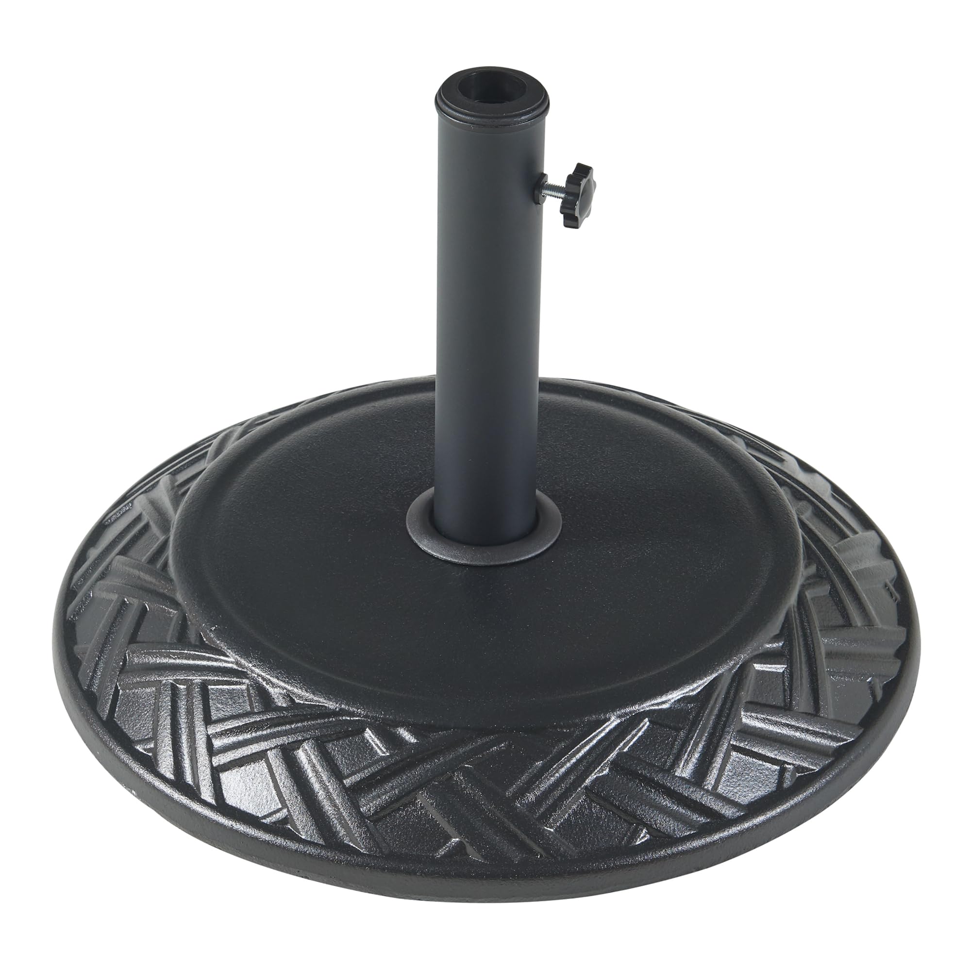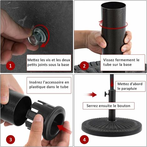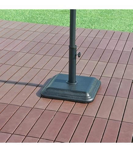 Produit de la marque : casa., pro Description : - pied de parasol avec socle en béton- fixation facile grâce à une vis de fixation- couche de protection sur le dessous- style intemporel pour tous les environnements- adaptateurs inclus- résistant aux intempéries- forme rond Matière : - socle : béton- tube du support : fer- adaptateur : plastique Dimensions : - socle (diamètre x hauteur) : 50 x 5,5 cm- hauteur totale : 32,5 cm- hauteur du tube : 27 cm- convient aux diamètres de tige : 37 / 42 / 52 / 58 mm Couleur: noir Poids : env. Stabilité inégalée : Le socle en béton assure une base solide, résistante aux intempéries, assurant la stabilité de votre parasol même par vent fort Socle de parasol demi-rond en Polyrésine Noir - DIOCHE - Adaptateurs... Installation sans effort : La vis de blocage intégrée permet une fixation facile du parasol, sans besoin d'outils supplémentaires, pour un montage rapide et pratique. Base de parasol - support de parasol pour poteaux de 37/42/52/58mm en Protection optimale : Une couche spéciale sous le socle en béton prévient les rayures sur les surfaces délicates, assurant la préservation de vos sols extérieurs. Adaptabilité universelle : Livré avec trois bagues d'adaptation de diamètres différents, ce pied de parasol convient à une variété de tubes, offrant une polyvalence sans pareille. Pied De Parasol Casa.pro Rond Avec Motif Du00e9coratif Adaptateurs 37/42/52/58 Mm Fixation Facile Couche De Protection Ru00e9sistant Aux Intempu00e9ries Bu00e9ton Fer Plastique 50 X 7 Cm Bronze Pied De Parasol 50 17 kg Contenu de la livraison : 1 x pied de parasol3 x bagues d'adaptation1 x notice de montage Remarque : Le parasol ne fait pas partie de l'offre ! De plus, sa vis de blocage permet de fixer le parasol facilement, sans nécessiter d'outils supplémentaires. Livré avec trois anneaux d'adaptation de 37, 42 et 52 mm de diamètre, il peut également accueillir le tube d'un parasol d'un diamètre allant jusqu'à 58 mm sans adaptateur.