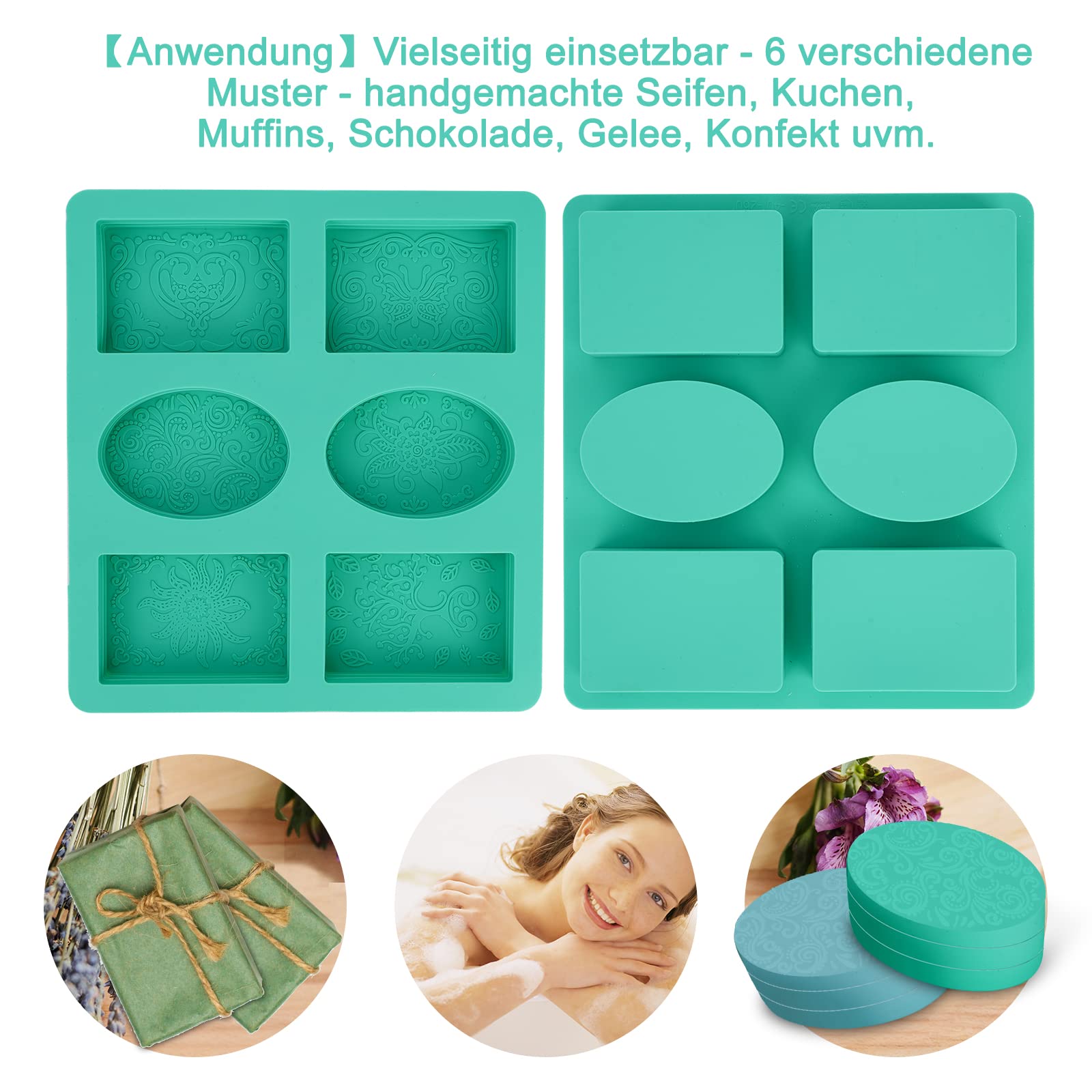 Le moule en silicone est sans BPA et certifié FDA, résistant à la chaleur et au froid de -40°C à 220°C, flexible et stable, les savons et les travaux manuels se détachent facilement grâce au revêtement antiadhésif. Grand Moule à Savon Rectangulaire - petit savon Créez des savons artisanaux pour les mains et le corps avec notre base de savon et nos accessoires DONNÉES : Contenu : 1 moule en silicone, couleur : vert avec différents motifs floraux - Convient au lave-vaisselle, au four et au congélateur, facile à nettoyer à la main ou au lave-vaisselle. DIMENSIONS : 21 cm x 20 cm x 3 cm - Taille du creux rectangulaire : 8 cm x 6 cm x 2,5 cm, Taille du creux elliptique : 8 cm x 2,5 cm. POLYVALENT : Peut également être utilisé pour le chocolat, la glace, les bonbons, les desserts, la gelée, les raisins secs, le plâtre, la résine époxy. La couleur peut différer de l'image Silicone 6 Avec Ovale Abeille Savon Fait Main Moule Bricolage Silicone Moule Pour La Cuisson G Teau Chocolat Fondant Savon Nos parfums donnent à votre savon une odeur unique Facile à utiliser et à nettoyer Travailler différents matériaux dans nos savons Moule À Glace – Moule En Silicone Réutilisable Pour Sucettes À Glace... Moule Rectangulaire Ovale Seifenprofis Silikonform (16 Stück) Seifenform Quadrat Oval Rund Hand Made Moule A Savon Créez vos œuvres individuelles avec les moules des Seifenprofis Utilisez différentes couleurs de nous pour obtenir des savons colorés