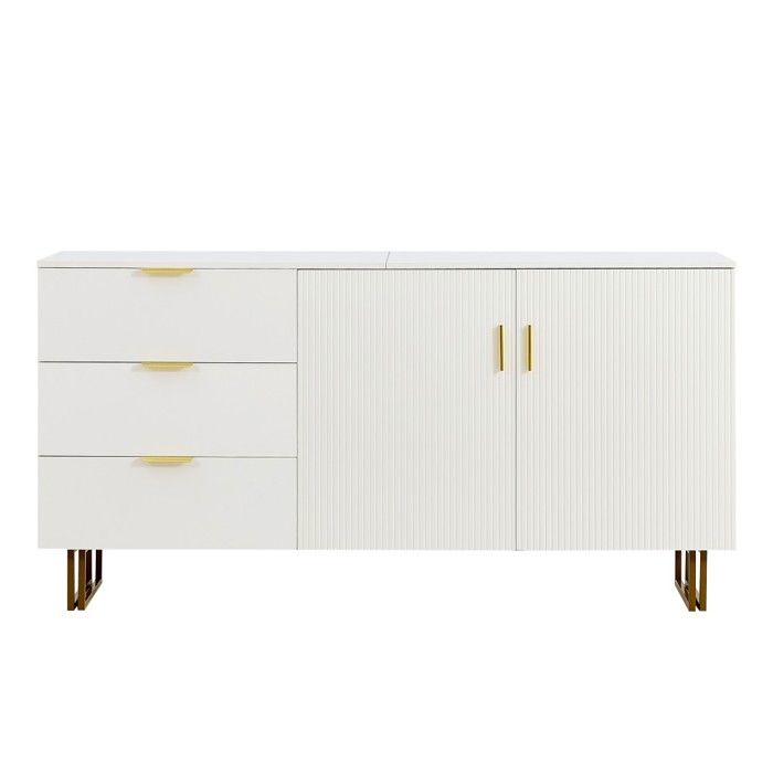 【Espace de rangement spacieux】trois tiroirs et deux portes offrent beaucoup d'espace pour ranger des ustensiles et des objets décoratifs. 【Utilisation polyvalente】parfait comme buffet dans la salle à manger ou comme solution de rangement dans le salon. 【Polyvalence d’utili】les poignées en alliage de zinc doré permettent d'ouvrir et de fermer facilement les portes et les tiroirs. Buffet 3 portes et 4 tiroirs effet bois - L160 x H85 cm Lublin | Maisons du Monde 【Montage facile】le buffet se monte rapidement et facilement à l'aide des instructions fournies. Deux portes, trois tiroirs et deux étagères ouvertes offrent un espace de rangement et d'exposition flexible pour les livres, les décorations ou d'autres objets et assurent une ambiance bien rangée Commode Chambre Buffet Avec 2 Portes Et 3 Tiroirs, Pour Salle à Manger Mdf Blanc Poignées Dorées Robuste et facile d'entretien]fabriqué en MDF de haute qualité, ce meuble est durable et facile à nettoyer. [Espace de rangement spacieux]trois tiroirs et deux portes offrent beaucoup d'espace pour ranger des ustensiles et des objets décoratifs