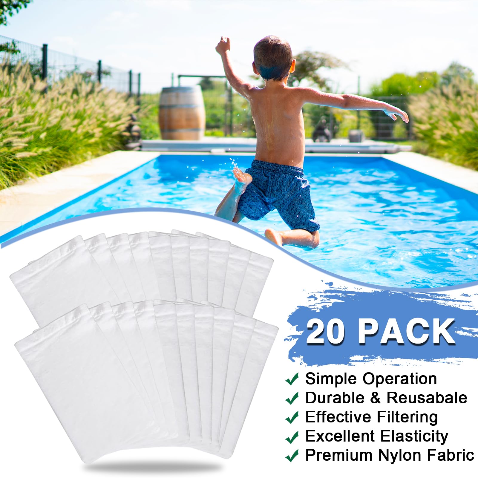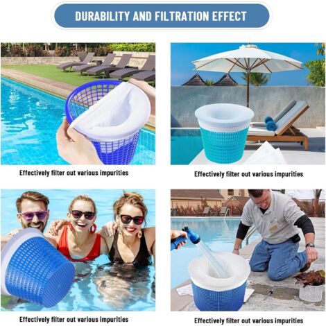 【Design Anti-bouchage】Ces chaussettes piscine agissent comme un « masque » pour la piscine, capturant même les plus petites particules comme le pollen. Avec des accessoires pour l'eau de la piscine ou pour toutes ses surfaces, nous répondons à tous les besoins nécessaires pour assurer le bon fonctionnement et le soin des piscines extérieures et des spas Maintenir une piscine propre et claire peut être un défi, surtout pendant les mois d'été. Cela empêche le blocage de la pompe, prolonge la durée de vie du filtre et réduit les coûts de maintenance. Que ce soit pour une piscine d'arrière-cour ou un spa haut de gamme, ces chaussettes skimmer conviennent à toutes les situations. 【Taille Universelle】La taille de ces chaussettes piscine (22 cm × 13 cm) s'adapte à 99 % des paniers filtrants. Leur durabilité permet une utilisation répétée. Chaussette Skimmer Piscine 24 Pièce, Chaussettes Skimmer Reutilisable 【Le Filet En Nylon Respirant 】Tissée à partir d'une maille en nylon micro-fine extensible et résistante, cette chaussette skimmer s'adapte parfaitement à votre panier filtrant. Il suffit de les étirer et de les placer sur le panier, sans besoin d'outils ou de compétences particulières. 【Pack De Grande Capacité De 20】Ce pack contient 20 paires de chaussettes skimmer piscine, offrant une solution idéale pour répondre aux besoins de nettoyage de votre piscine pendant toute la saison de baignade. 15PCS Chaussette Skimmer Piscine,Filtres en Tissu de Nylon,Piscine... Nettoyage Piscine Accessoires Lot De 20 Chaussette Skimmer Piscine,Chaussettes Filtre Piscine Pool Prefiltre Skimmer De Surface Intex,Nettoyage Et Accessoires Pour Filet Piscine,Balle Filtrante Floculant Panier Net Skim Flottant Préfiltre Débris Feuilles Pollen Investir dans ce lot de 20 chaussettes filtrantes est une décision économique et écologique, réduisant la fréquence des nettoyages en profondeur et prolongeant la durée de vie de votre système de filtration.