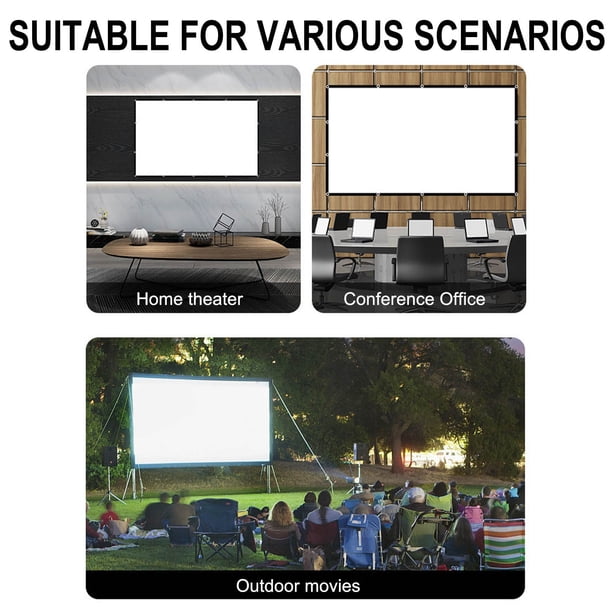 Regarder votre film préféré sur de l'herbe fra?chement coupée est une expérience qui vous fera vous sentir à nouveau comme un enfant. L'écran du projecteur haute définition est fabriqué à partir de 3 couches de matériau photosensible spécial nouvelle technologie, et il a une mezzanine spéciale au milieu, qui a plus d'opacité et offre une forte pénétration de la lumière, fournit des couleurs plus vives et une image plus nette. 120 Pouces 16 9 HD Projecteur ?Cran Intérieur Extérieur Portable ?Cran Pliabl... Objet neuf et intact, n'ayant jamais servi, non ouvert, vendu dans son emballage d'origine (lorsqu'il y en a un Cran de projecteur 150 Pouces 16: 9 HD Pliable Anti-froissement Écran... Conception compacte d'une seule pièce, légère et pliable. Pwshymi écran de projecteur de 120 pouces Écran de projecteur 120 ?Vous pouvez plier l'écran de cinéma en petite taille et le mettre dans votre sac à dos ou votre valise. Prêt pour la 4K Ultra HD et la projection 3D active. écran Polyester HD 4K 120 Pouces Écran De Projection 16 9 HD Pliable Anti-Crease Projecteur Portable Films Écran Pour Home Cinéma Extérieur Intérieur Soutien Double Face Projection Support Projection 16:9 ?cran de projection de 120 pouces avec angle de vision de 160 °, offrant une large zone de visualisation, c'est un excellent choix pour les films de cinéma maison, les films en plein air, la formation en classe, les présentations en salle de conférence, l'affichage public, etc. ?cran de projecteur avec angle de vision de 160 °, offrant une large zone de visualisation, c'est un excellent choix pour les films de cinéma maison, les films en plein air, la formation en classe, les présentations en salle de conférence, l'affichage public, etc. qui convient aux projections intérieures et extérieures avec votre famille et vos amis Spécifications: Nom: Rideau en film polyester double face Matériau: tissu polyester Taille: 60 / 100/120 pouces (16: 9) Angle de vision: grand angle 180 ° Le rideau a des bordures noires, de la taille de?les bordures noires mesurent environ 2,5 cm de large Le rideau est assorti à une corde et à 6 crochets pour votre commodité!
