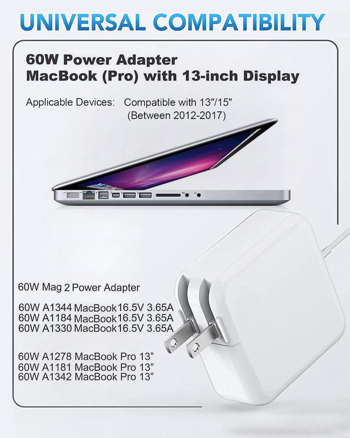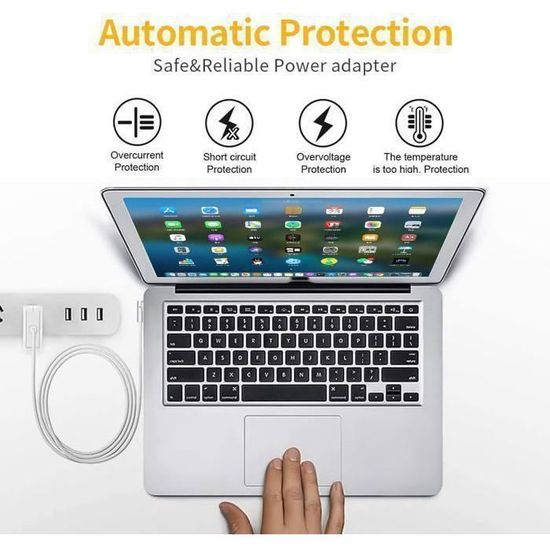 Chargeur Macbook Air/Pro 60W, Chargeur 2 Compatible avec Mac Book Air Chargeur Macbook Pro Chargeur Pour Mac Book Pro,60W Charger Magnétique T-Tip Port Chargeur MacBook Rétina 13 Pouces ✔️【Service aux clients】Mac book pro/air chargeur offre une garantie d'un an et une assistance par courriel 24 heures sur 24., Si vous n'êtes pas sûr que notre chargeur convienne à votre produit, écrivez-nous. ✔️【Grande compatibilité】Chargeur Mac Book Pro 60W T-Tip pour modèles A1425, A1435, A1502, A1465 et. ✔️【Indication de charge】Macbook pro chargeur Le connecteur magnétique en forme de T guide la fiche dans le système pour une connexion rapide et sûre. SCOVEE Chargeur MacBook Pro T-Tip 60W, Adaptateur T-Tip 60W Rapide Compatible avec Mac Book Air& Mac Book Pro 11''et13'' Pouces 2012~2018, Modèle A1425, A1435, A1502, A1465 Pas de bruit ni d'étincelles lors de la charge, votre ordinateur ne sera pas endommagé. Chargeur Alimentation 5 PIN pour MACBOOK PRO 60w | Rakuten ✔️【Caractéristiques de protection】Chargeur Mac Fabriqué en ABS et polycarbonate de haute qualité avec un noyau en cuivre galvanisé de haute qualité, le chargeur est bien protégé. Mac Book Pro (Retina, 13 pouces, début 2015); Mac Book Pro (Retina, 13 pouces, mi-2014); Mac Book Pro (Retina, 13 pouces, fin 2013); Mac Book Pro (Retina, 13 pouces, début 2013); Mac Book Pro (Retina, 13 pouces, fin 2012).