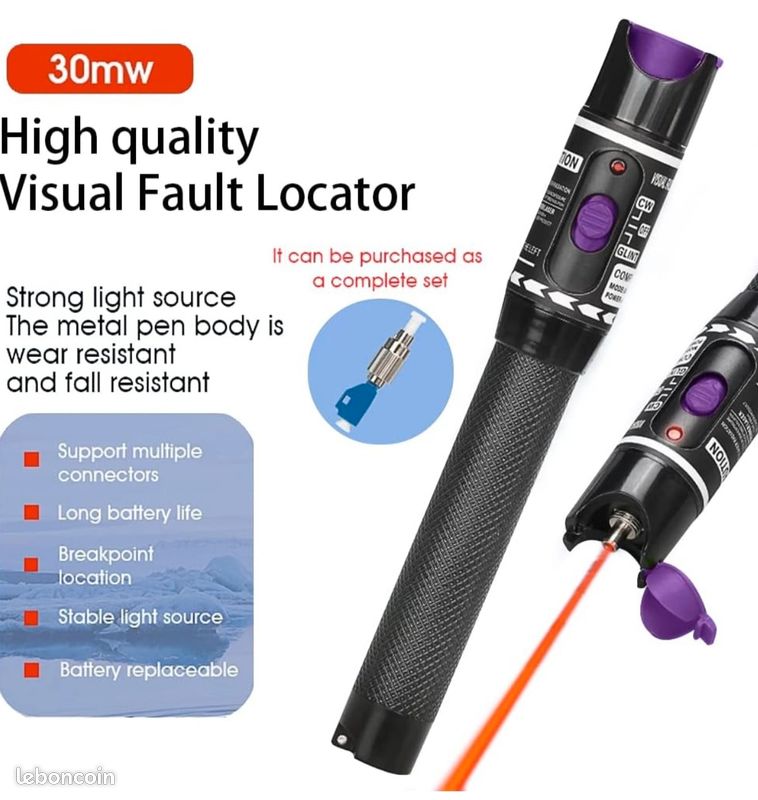 Ce localisateur visuel de défauts peut facilement et précisément détecter et localiser les ruptures de fibres, les mauvaises connexions, les coudes ou les fissures. CONCEPTION HUMANISÉE interrupteur à glissière, contrôle de l'état du stylo à lumière rouge comme vous le souhaitez, corde à main anti-chute, application intime 1 x Noyau en céramique , 1 x Manuel [Sortie stable] : La puissance de sortie du stylo à fibre optique est stable avec une distance de sortie de 50 km, ce qui est un bon outil pour les tests de fibre optique. Contenu de la boîte 1 x Stylo à lumière rouge VFL , 1 x Sac de stylo , 1 x Lanière 30MW 30KM Localisateur Visuel de Défauts, Fibre Optique Cable Testeur Largement utilisé dans le système de câblage intégré et l'ingénierie de la fibre optique, l'ingénierie CATV, la maintenance des réseaux optiques et la communication optique, etc. [Conception de connexion sans ] : Le compteur n'endommage pas la face terminale de la fibre et de l'émetteur, et la puissance de sortie n'est pas affectée par les fluctuations de tension. TESTEUR DE FIBRE Optique 50MW FTTH, Localisateur visuel de défauts de... Localisateur Défauts 50mW 50km GOTOTOP Localisateur Visuel De Défauts à Fibre Optique Localisateur Localisateur Défauts Câble Fibre [Stylo à fibre optique VFL] : Ce localisateur visuel de défauts de fibre optique de type stylo est spécialement conçu pour la maintenance des câbles et lignes de fibre optique et peut localiser efficacement les défauts sur les câbles. NOYAU CÉRAMIQUE REMPLAÇABLE Remplacer la tête métallique peut être enlevé, chaque stylo de lumière rouge sera un noyau en céramique supplémentaire Stylo à fibre optique VFL] : Ce localisateur visuel de défauts de fibre optique de type stylo est spécialement conçu pour la maintenance des câbles et lignes de fibre optique et peut localiser efficacement les défauts sur les câbles TOURNER VERS LA GAUCHE POUR PIVOTER À 360 L'anneau de protection pivote pour couvrir les clés afin d'éviter toute mauvaise utilisation, protéger les clés des dommages et économiser l'électricité [Interface standard de 2,5 mm] : Connecteur universel de 2,5 mm, adapté aux interférences LC, ST, SC, FC avec différents câbles de fibres optiques ronds et carrés, les câbles de fibres optiques monomodes et multimodes peuvent être testés. PUCE HAUTE PERFORMANCE Puce de haute qualité, modulation du signal de gestion de l'énergie, contrôle de l'interrupteur en un, source lumineuse puissante, durable. Ce localisateur visuel de défauts possède une source lumineuse puissante de 50mW, un circuit de puissance efficace qui fournit une puissance stable, une onde continue et un mode d'impulsion.