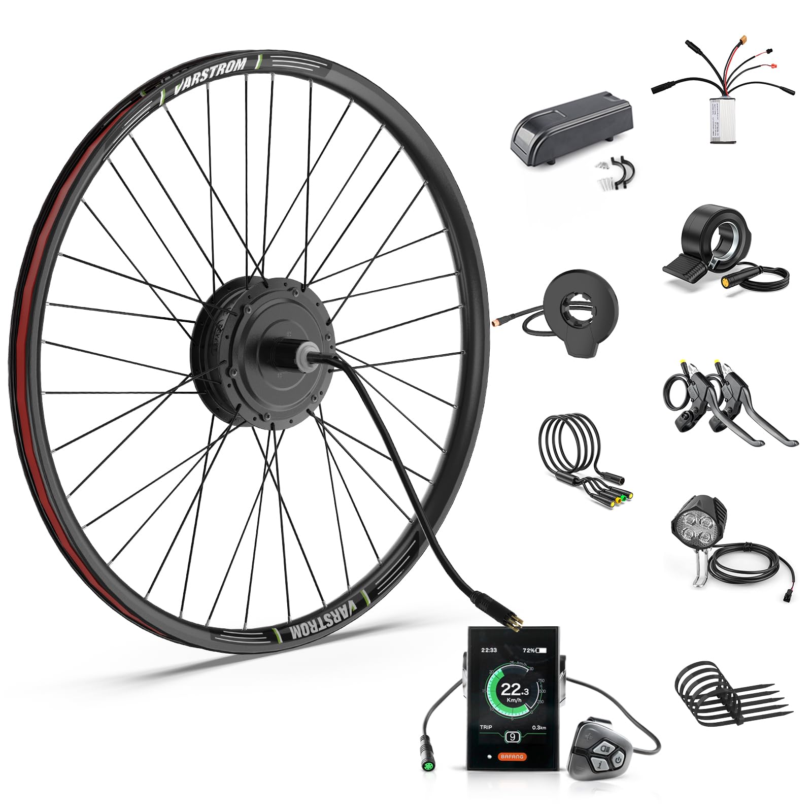 Fonctions multiples : ce produit a un dérailleur réglable à 5 vitesses et un régulateur de vitesse. Il peut vous offrir une expérience de conduite sans précédent. Elle est non seulement très pratique à stocker, mais aussi très jolie. Le kit SHZICMY est conçu pour transformer un vélo standard en vélo électrique grâce à un moteur de 1500 W alimenté par une batterie 48 V. La roue arrière de 26 pouces, en aluminium, intègre un moteur brushless, promettant une durabilité accrue et une résistance aux conditions urbaines exigeantes Il vous aide à conduire, double la distance de conduite et rend la conduite plus facile 1 levier de frein d'arrêt., 1 sac pour manette. Vous pouvez voir très clairement la vitesse, la puissance, le kilométrage et d'autres données affichées., 3., Capteur d'assistance au pédalage : ce produit dispose d'un capteur d'assistance au pédalage, qui peut détecter la cadence et ajuster la vitesse du moteur en conséquence. Kit de conversion de vélo électrique avec écran LCD 48 V 1500 W Snow Bike/Fat Tire, roue arrière rotative 20/26", moteur moyeu rotatif, sac de contrôleur LCD Caractéristiques techniques : Matériau de la roue : aluminium Couleur : noir. M Vitesse du moteur : 55 km/h., Poids brut : 12,5 kg., Poids net : 11,5 kg. Matériaux de haute qualité : la moto est fabriquée en aluminium de haute qualité, robuste et durable. Tous les accessoires pour le montage., Indications : 1., Ce kit ne contient pas de pneus et doit être acheté par le client. Chaque partie du kit de conversion est fabriquée avec un savoir-faire de haute qualité, sûr et durable. Il est très bon pour une conduite longue distance et peut éviter les douleurs au poignet en appuyant constamment., 4., Sac de manette : ce kit est équipé d'un sac de contrôleur dans lequel le contrôleur peut être rangé. Ce kit de conversion professionnel et fiable est un bon choix pour vous. Conversion Ebike 1500W Kit Conversion Vélo Électrique 1500W 48V - Roue Arrière 26 Pouces, LCD, Moteur Brushless Contrôleur Lcd Vélo Vitesse de rotation : 500 tr/min., Couple : 50 N. Description : Vous êtes un cycliste passionné ? Vous avez généralement du mal à grimper les collines avec votre vélo ? Voulez-vous sentir le vent ? Vous êtes impatient de modifier votre puissant vélo électrique ? Alors ne manquez pas notre kit de conversion de moteur de vélo électrique. Haute performance : ce produit est équipé d'un moteur sans balais sans balais de 1500 W 55 km/h, qui est puissant et peut réduire le bruit. 1 manuel d'utilisation en anglais. Kit Conversion Velo Electrique Jiumxliu Kit De Conversion Pour Vu00e9lo U00e9lectrique 26 48 V 1500 W Roue Avant Moteur U00e0 Transmission Sans Balais 31,05 Km/h, 5 Niveaux PAS, Ru00e9gulateur De Vitesse, U00e9cran 1 volant d'inertie à 7 vitesses., 1 appareil de commande., 1 écran LCD., 1 papillon ordinaire. Type de suspension : arrière Caractéristique spéciale : électrique Tension : 220 V Tension de sortie : 48 V., Puissance : 1500 W. La taille de pneu appropriée est de 6 x 1,75-2,125 pouces.