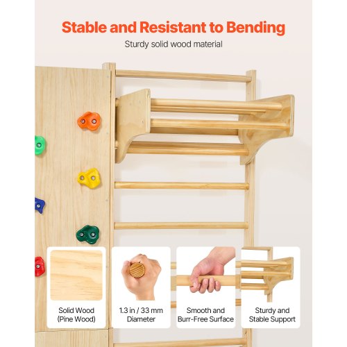 Mophorn Espalier En Bois Massif, Échelle Murale à 8 Niveaux, Capacité De 100 Kg, Gym Mural Multifonctionnel Avec Anneaux Barre De Traction Et Echelle De Corde Ideal Pour Escalade Et Jeux Interieurs 90710314 Assemblage modulaire pratique Grâce à sa conception modulaire et à son manuel d'utilisation détaillé, l'installation de cet ensemble d'échelles suédoises en bois est un jeu d'enfant. Escalade sûre et confortable : Les espaliers de gymnastique en bois massif présentent des bords arrondis et polis, ainsi qu'une surface lisse et sans bavures pour une prise en main sûre. Matériau : bois massif (bois de pin) Elle s'intègre facilement dans les chambres d'enfants, les coins de salle de sport ou les murs des couloirs. Suivez les instructions simples et, en quelques minutes, vous aurez un ajout amusant et fonctionnel à votre maison Durable, élégante et conçue pour aider à grimper, à s'entraîner et à se muscler Un excellent moyen de réunir toute la famille pour des activités ludiques et sportives Doté d'une barre de traction, d'anneaux de gymnastique, d'une échelle murale et d'une échelle de corde, il offre un plaisir sans fin tout en améliorant l'équilibre, la coordination, la force corporelle et le développement sain de votre enfant. Physionics® Échelle Suédoise - Pour Adultes Et Enfants, Murale, Avec 10 Barres, 195 X 80 X 14 Cm Charge Max 100 Kg Bois De Pin 93864008 Facile à installer au mur, il transforme n'importe quelle pièce en un espace d'exercice stimulant pour un plaisir sans fin. Forte capacité de charge : notre salle de gym murale d'intérieur est fabriquée à partir de bois massif large et épais et supporte jusqu'à 100 kg, idéale pour... Contenu du coffret 1 x Gymnase mural à échelle suédoise Explorez plus d'options de jeu Dotées d'une barre de traction, d'anneaux de gymnastique, d'une échelle murale et d'une échelle de corde, ces barres suédoises encouragent votre enfant à explorer de nouvelles façons de jouer chaque jour. Forte capacité de charge : Fabriquée en pin massif, l'échelle murale suédoise supporte jusqu'à 100 kg, offrant une grande stabilité aux adultes. Facile à nettoyer La surface en bois sans échardes s'essuie facilement avec un chiffon humide, gardant votre aire de jeu propre et fraîche. Idéal pour plusieurs espaces La barre de gymnastique en bois massif est idéale pour la maison, la chambre d'enfant, la salle de jeux, les crèches, les espaces de jeux et les jardins d'enfants. 1 x ensemble d'accessoires de montage Echelle suédoise en bois massif 80 x 195 x 14 cm pour musculation et fitness Nul besoin de l'aide d'un expert ; suivez simplement les instructions et vous créerez rapidement une aire de jeux ludique. Ensemble de jeu d'escalade mural 4 en 1 : Ce gymnase mural à échelle suédoise 4 en 1 à 8 niveaux comprend des anneaux de gymnastique, une barre de traction, une échelle de corde et une échelle murale, offrant un plaisir sans fin tout en aidant à rester actif et à explorer de nouveaux défis