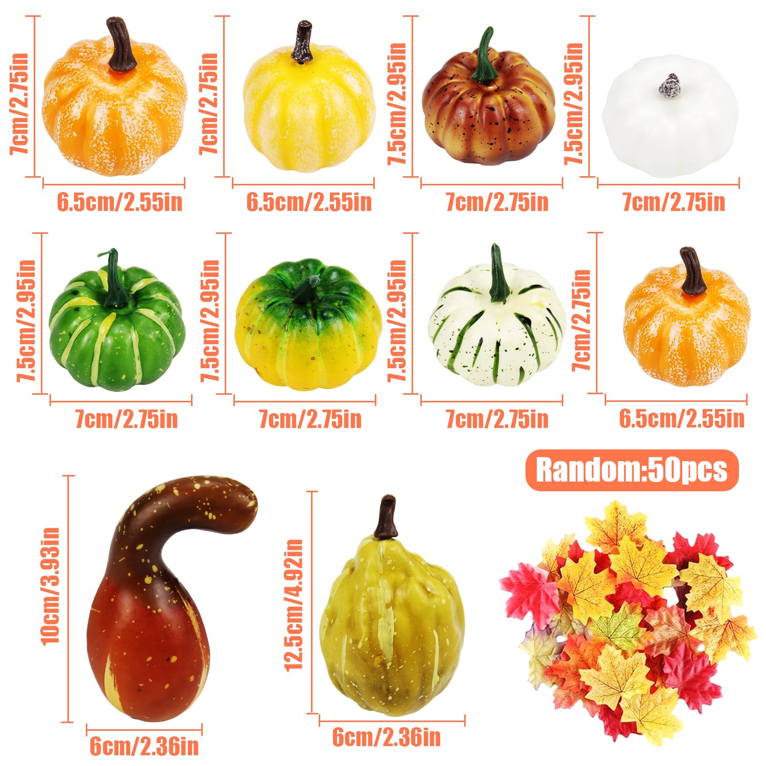 Pour une ambiance cosy d'automne ! Cette citrouille décorative en mousse avec fleurs en soie apporte une touche chaleureuse à ton intérieur La forme est pleine et ronde, il a l'air délicat et mignon, et peut créer une forte atmosphère automnale comme ornement décoratif central de table YiYa Décoration d'automne Citrouille Décoration Grande Décoration de Citrouille en Verre Doré Citrouille de Décoration Halloween pour la Décoration de Table Décoration d'halloween d'automn | Votre wishlist sur Spécification: Matériel: résine Taille: 2cm,2cm,2., 3cm,2., 5cm,2., 5cm Type: Automne Decoration L'emballage comprend: 90 Pièces Mini citrouilles Citrouille décorative Feature: la fausse citrouille artificielle est faite de matériau résineux qui ne se déforme pas pendant le transport, la surface est lisse et ne jaunit pas ou ne change pas de couleur après une utilisation prolongée mini citrouille peut être emballé dans un vase et utilisé comme décoration de table pour donner à la pièce une sensation chaleureuse et créer une ambiance festive comme Halloween et Thanksgiving. Scénarios d'application: Notre mini citrouille peut être placé sur la table à manger ou le Bureau, utilisé comme décoration centrale, placé dans un vase ou combiné avec d'autres occasions, adapté à toutes sortes de fêtes d'automne, Thanksgiving et Halloween, décoration de mariage d'automne comme accessoires de prise de vue pour créer facilement une ambiance d'automne chaleureuse. Ensemble de mini citrouilles : ce lot comprend 80 mini citrouilles orange en 5 formes de citrouille différentes, avec des hauteurs de 2 cm, 2,3 cm et 2,5 cm. Différentes formes de citrouille pour répondre à vos besoins de bricolage et de décoration d'automne Mini citrouilles en polystyrène - 24 pièces - Supports d'Halloween à décorer Conception réaliste: Les mini citrouilles décoratives résine ont des tiges orange et vert vif, et les rayures verticales sur la surface présentent une texture de citrouille réaliste. Matériaux de haute qualité: ces citrouilles décoratives sont faites de résine avec une surface dure et lisse, vous n'avez pas besoin de vous soucier des rayures ou de la décoloration pendant le transport, vous pouvez les réutiliser, les citrouilles sont toujours comme neuves Des formes de citrouille riches et variées peuvent répondre à vos différents besoins de bricolage